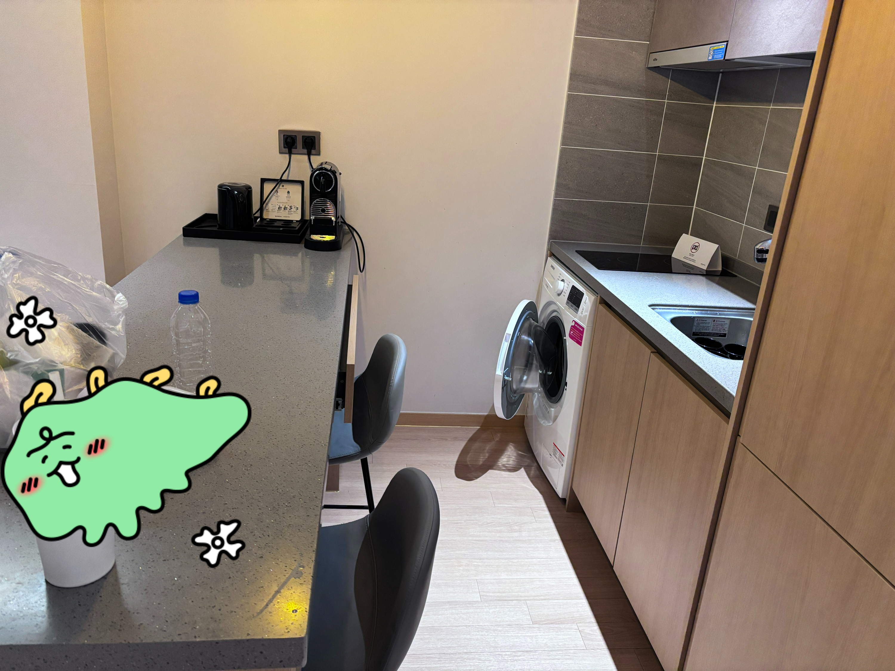 다만, 방에서 취사가 허용되지 않아요. 전자렌지같은 것도 없고 인덕션이 있지만 아예 사용 불가입니다. 객실에 식기류도 하나도 없어요. 당연히 세제도 없고요. 모두 사용하려면 공유키친에 가셔서 이용하셔야 해요. 공유주방은 B동 1층에 있어요. 조식 시간 외에는 거기서 가져간 음식을 먹는 것이 허용된다고 하더라고요. 공유주방에 식기류, 조리도구, 설거지 도구 등이 다 있으니 참고 부탁드려요. 전자렌지는 공유주방 말고도 로비층에 있는 편의점에서도 눈치보지 않고 이용하실 수 있습니다. 저는 조식을 주말에만 운영하는 줄 알고 조식불포함 상품을 예약했었는데, 성수기 시즌엔 평일 주말 모두 조식을 운영한다고 해요.