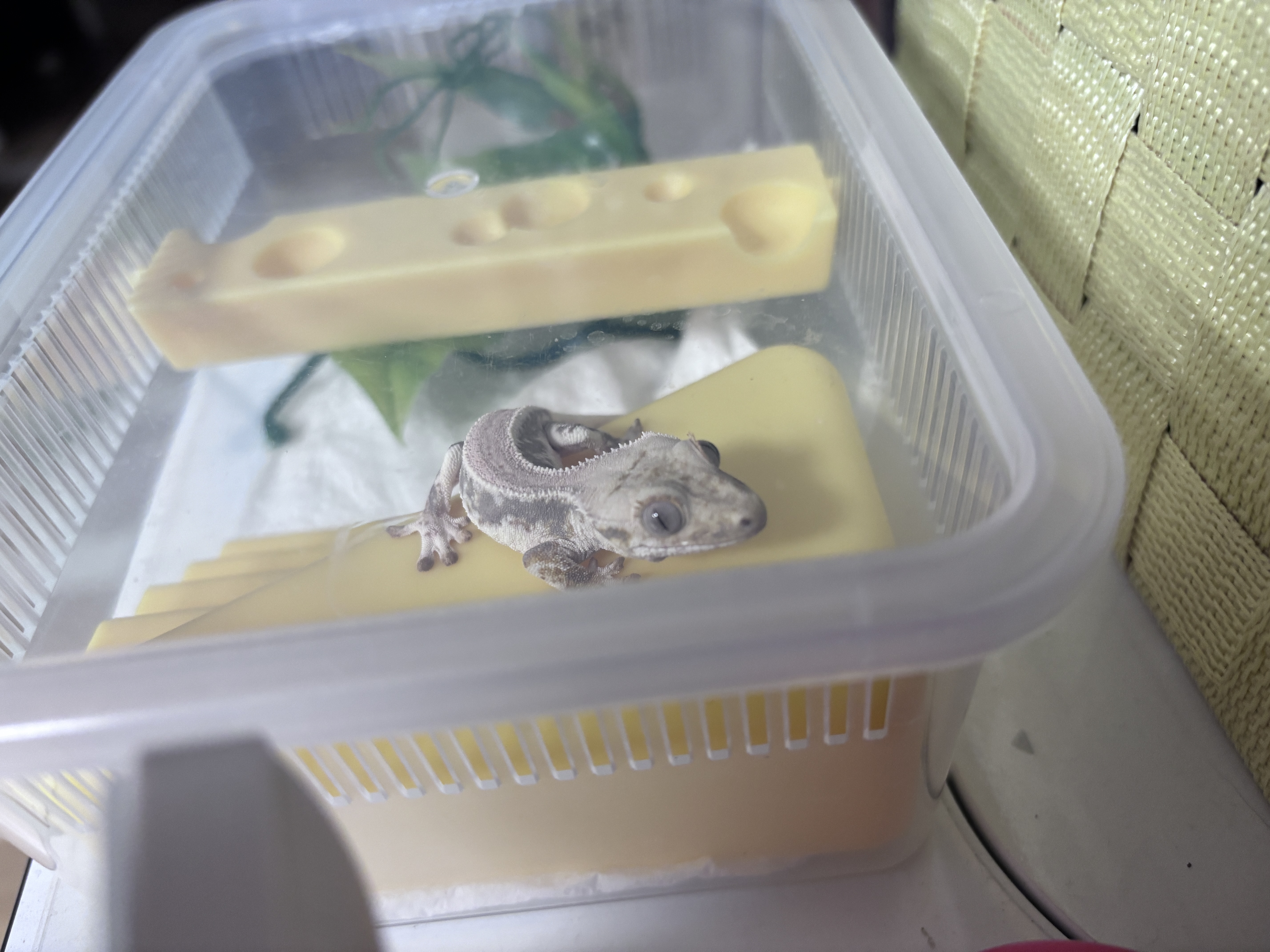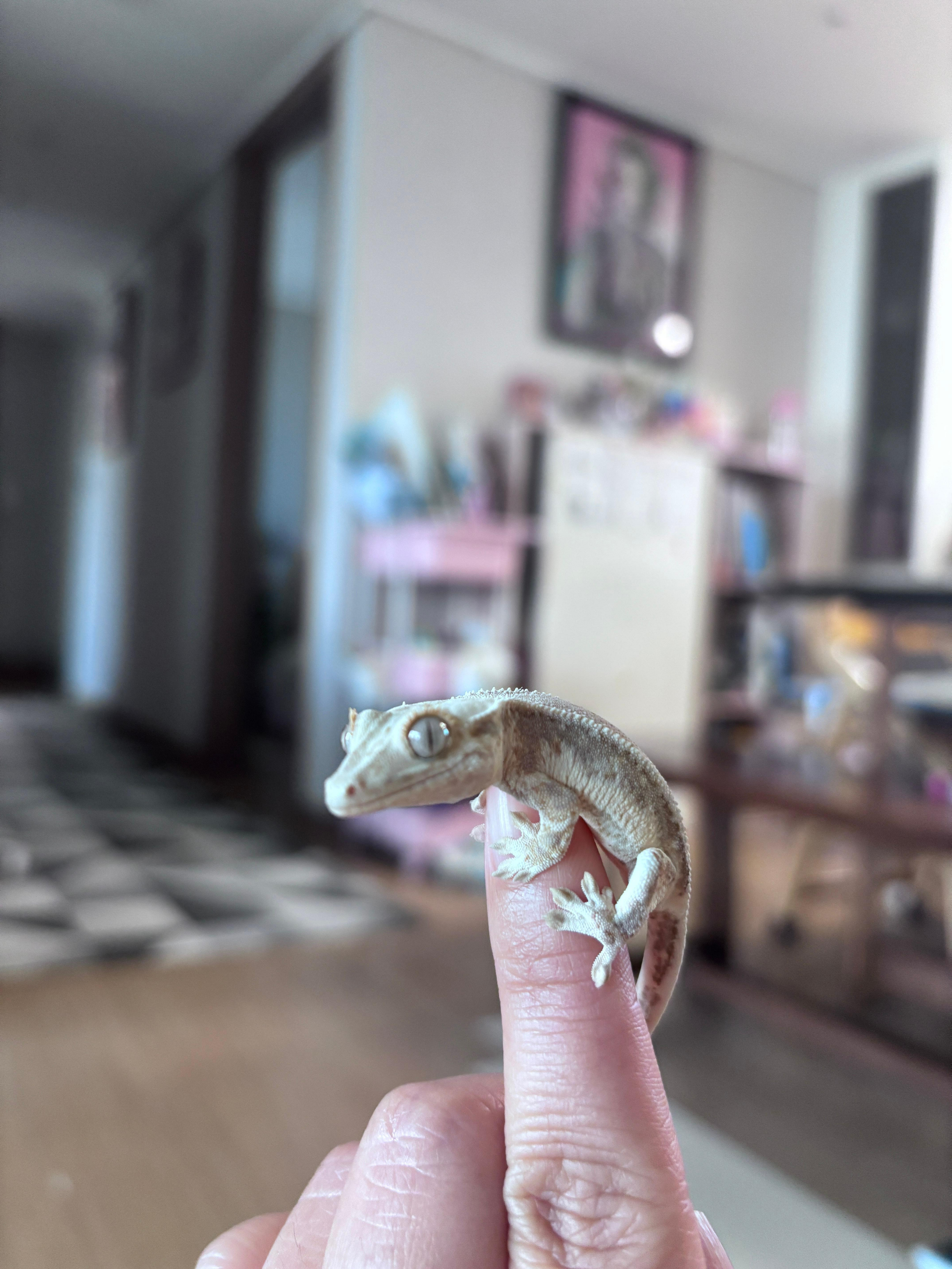 우리집 막둥이 예쁜것좀 보러오세요! 너무 예쁜 우리집 막둥이 크레스티드게코다. 도마뱀은 야행성이기 때문에 낮시간엔 핸들링 하는 것을 자제한다. 또한 너무 잦은 핸들링은 개체의 성장에 영향을 줄 수 있다고 한다. 그래서 우리 가족은 막둥이를 만날 수 있는 날은 먹이를 주는 날로 한정했다. 막둥이는 월수금 20시 정도에 밥을 먹는다.