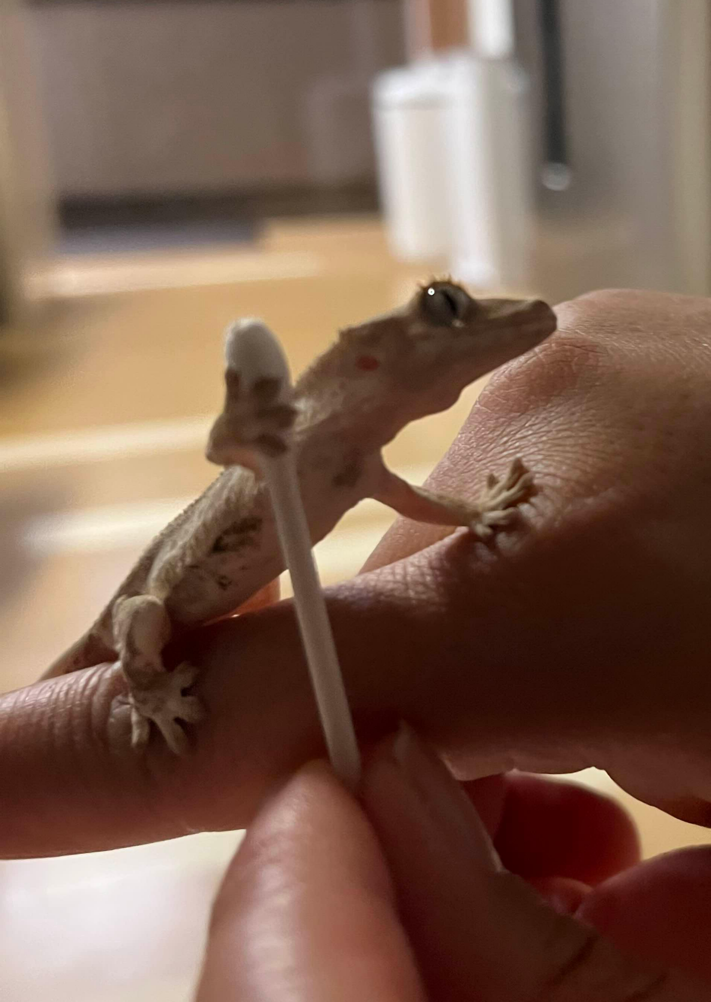 면봉과 비교한 크기다. 너무 작고 소중해ㅠㅠ 저 면봉을 잡고 올라가는데 발이 진짜 귀엽다.