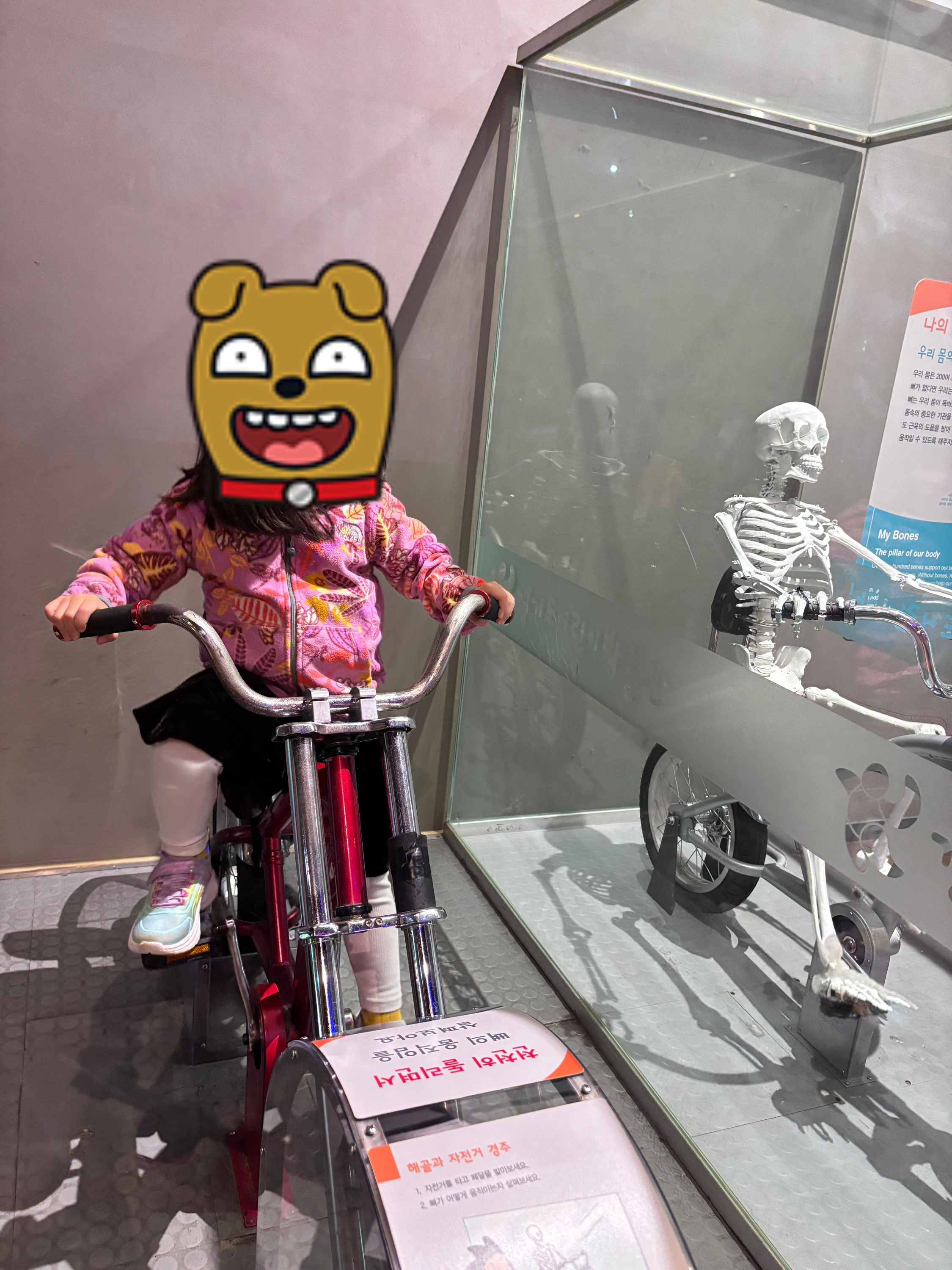 바람의 나라 옆에는 신체에 관한 전시가 마련되어 있어요. 여기 역시 어린이박물관 답게 체험할 수 있는 것들 위주로 되어 있어서 호기심 많은 꼬마친구들은 이것저것 눌러보고 만져보기 바빴어요. 특히나 저희 둘째는 변기에 앉아서 똥싸는 체험같은걸 유독 재밌어 했어요. 해골과 함께 자전거 타는 것도요!