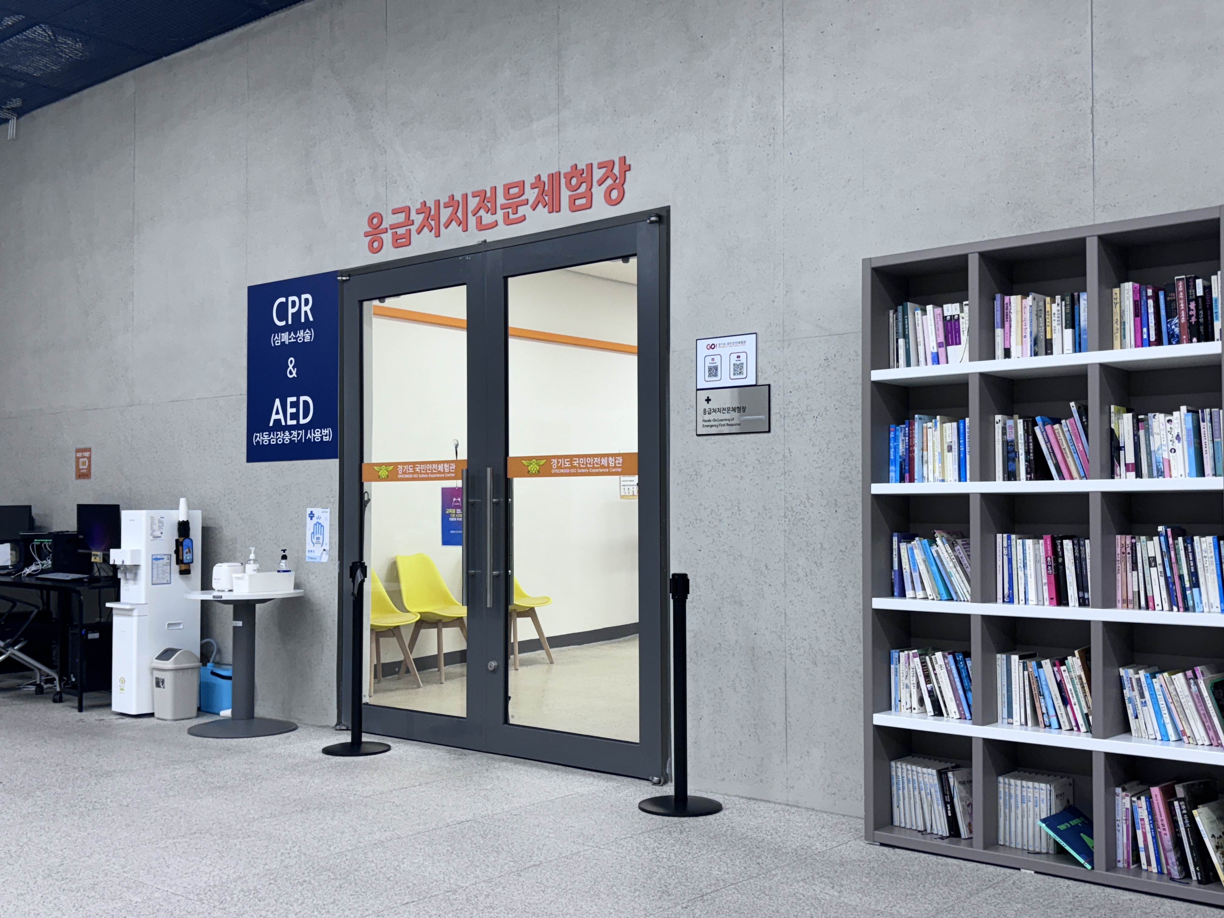 응급처치전문체험장에서는 대기 중인 부모님들아 원한다면 심폐소생술과 자동심장충격기 사용법을 교육해 주셔요. 근데 혹시라도 아이가 프로그램 도중에 화장실 때문에 나왔는데 부모님이 안계셨을 때 당황할 수 있으니 아빠, 엄마 중 한명만 교육을 받으러 들어가야 할 것 같아요. 저도 받아본 적 있는데 생각보다 심폐소생술이 굉장히 힘들더라고요. 교육 받아보신 적 없으면 한번 꼭 들어보시면 좋을 것 같아요.