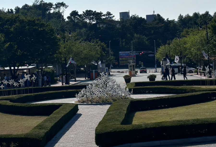 중심 광장에 수많은 태극기 바람개비가 있어요. 저희 아이들은 들릴때마다 저기서 사진을 찍었는데 올해엔 추석이 일러 아직 많이 더웠습니다. 그래서 그런지 아이들이 지쳐서 사진찍으러 갈 엄두를 못내더라고요.