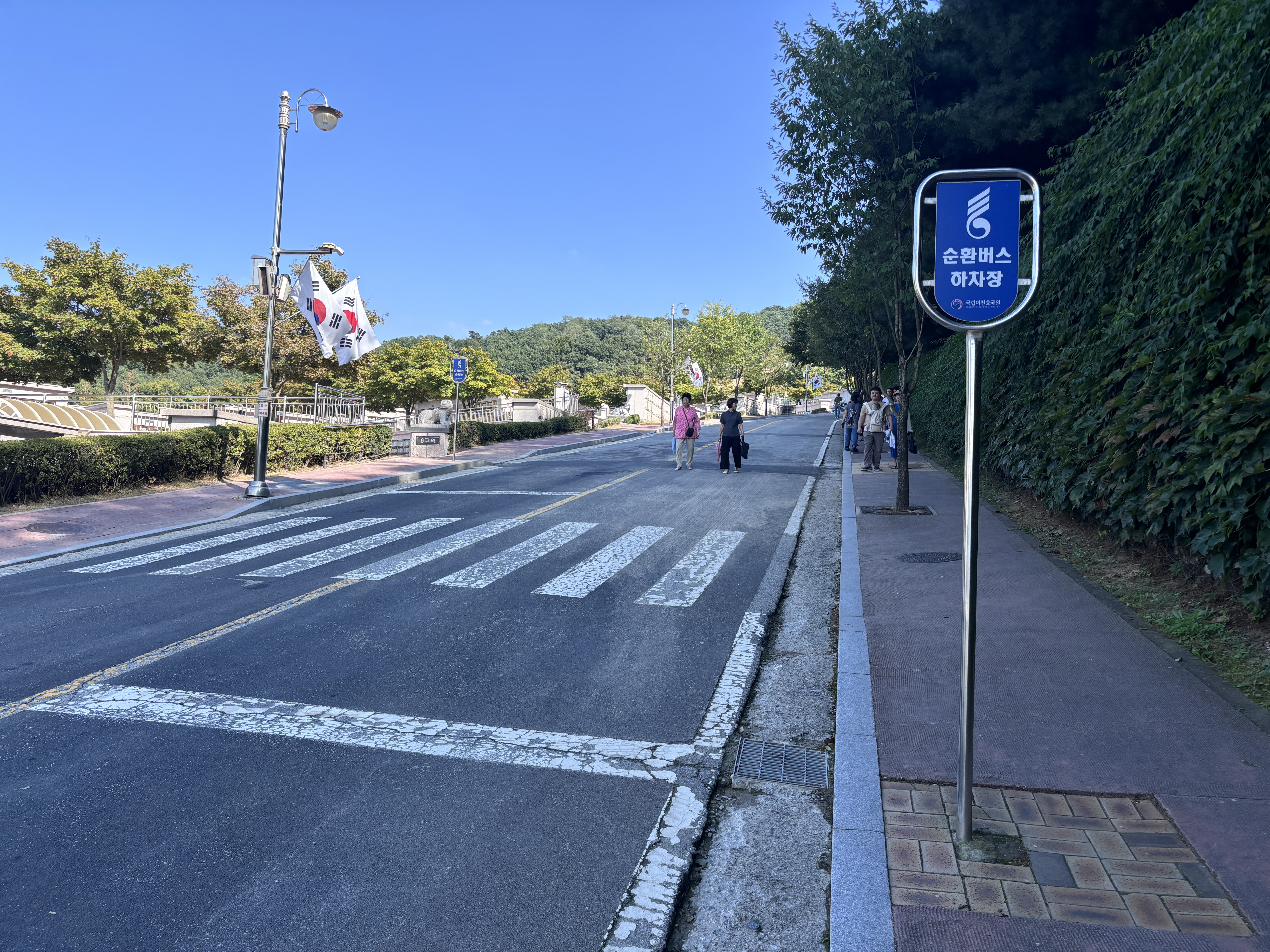 호국인의 쉽터에서 꽃을 구입하고 나오면 호국원 셔틀버스를 이용할 수 있는 곳이 보여요. 총 26구역까지 있는데 최근에 안치한 순서대로 묘역이 정해지는 것 같아요. 저희는 그래도 5구역 안쪽이라 날씨가 덥든 춥든 걸어서 가기에 충분해서 걸어갔지만 연세가 있으시거나 높은 곳에 안치한 가족이 있는 분들은 셔틀버스를 타고 올라가시더라고요.