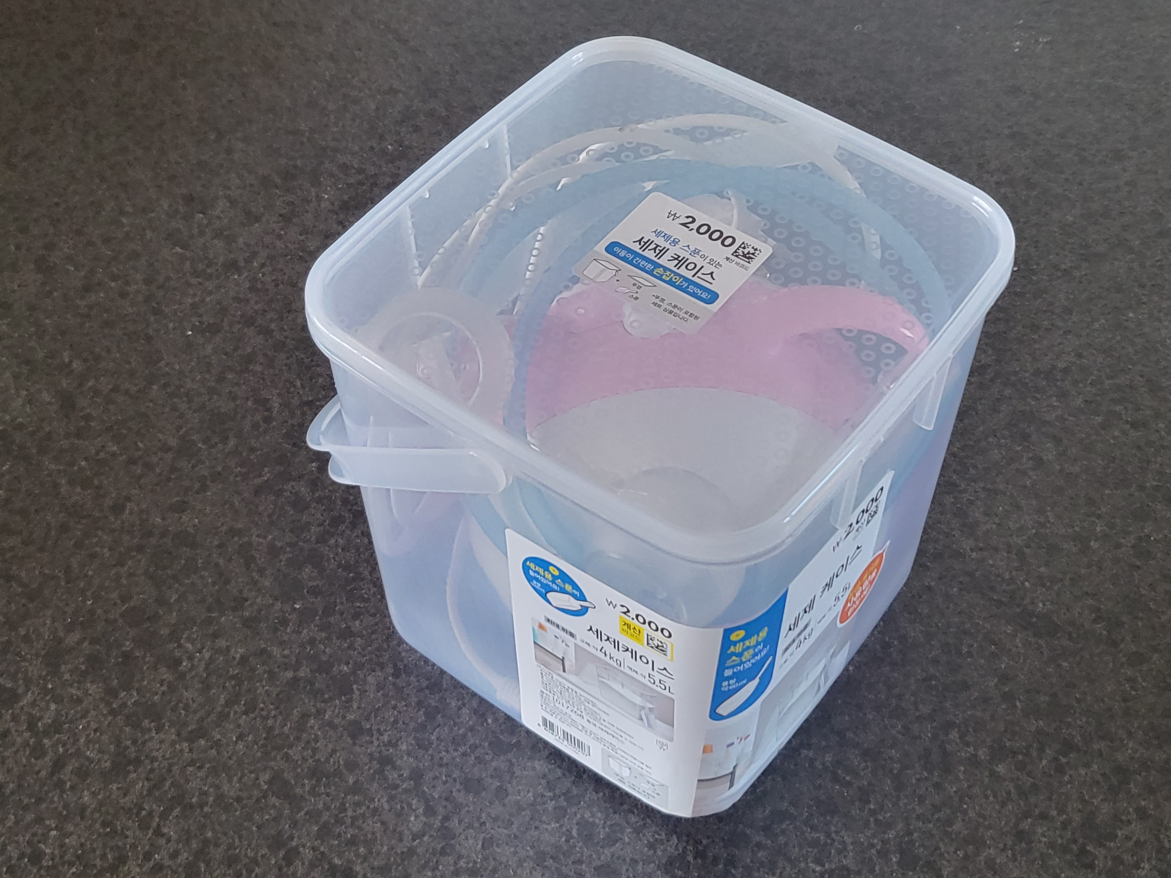 세제 케이스입니다. 스푼도 들어있어요! 스푼은 흠... 딸내미들 편백놀이 할 때 쓰라고 줘야겠어요. 노시부 보관하려고 2천원 쓴게 좀 어이없긴 하지만 그래도 2년 넘게 쇼핑백에 방치되어있던 것을 생각하면 참 잘한 소핑인 것 같아요. 이제 그 쇼핑백은 보내줘야겠습니다.