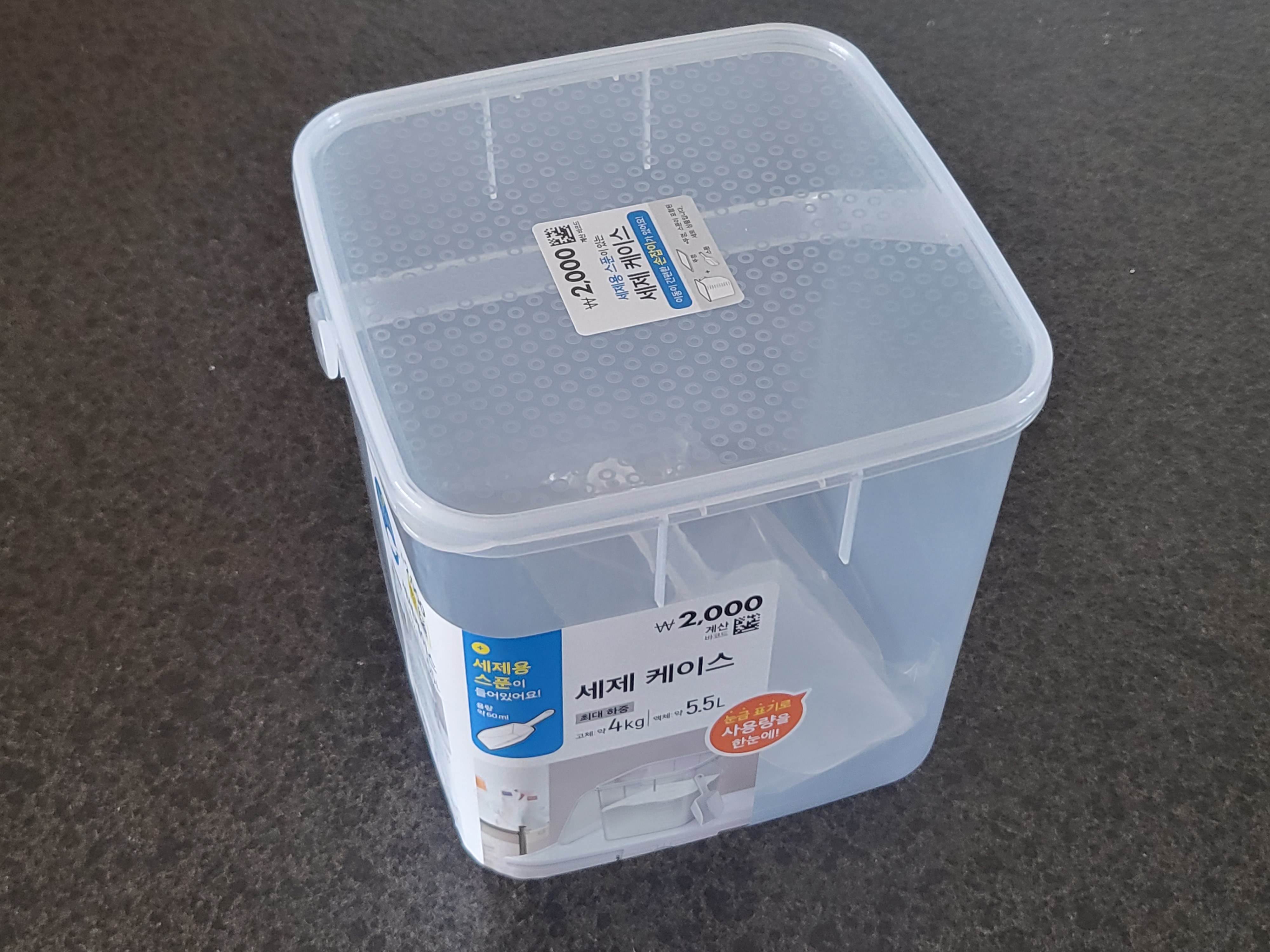 그러다가 노시부를 넣으면 찰떡이라는 다이소 판매 제품인 세제통 글을 맘카페에서 보게 됩니다. 그리고 다이소 갈 일이 생길때까지 참다가 얼마 전 드디어 볼일이 생겨 함께 모셔왔어요. 다이소에서 수납함 말고 세탁세제 쪽에 있으니 참고해주세요.