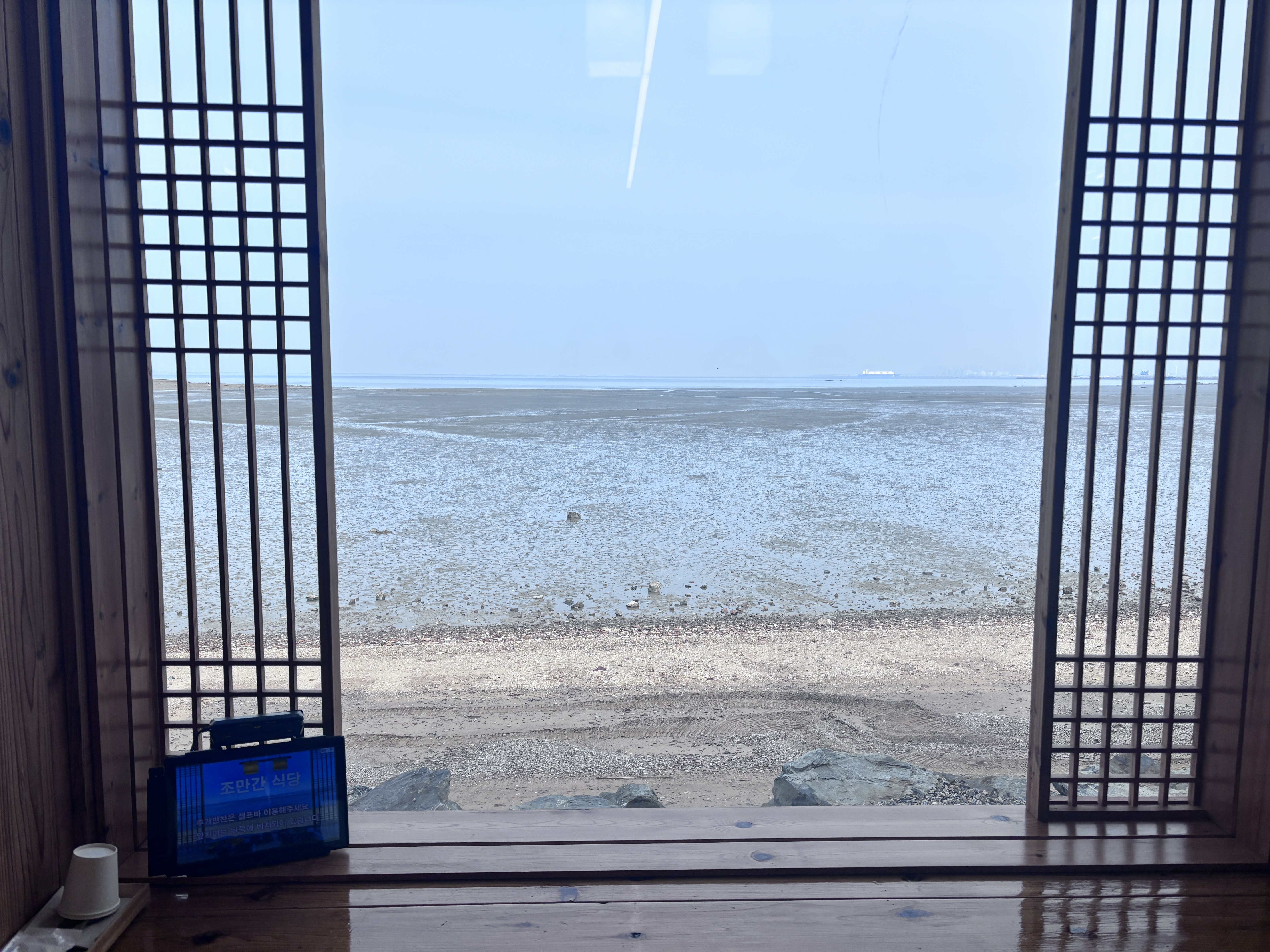 바다가 한 면을 가득 채우는 창, 조만간식당 뷰