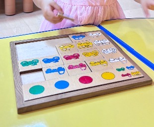 슬슬 다리아퍼질라고 했더니 교구실이 있네요? 안에 들어가보니 구비해 놓은 교구들이 엄청 많았어요. 제가 어릴때 저희 집에 있었던 교구도 있어서 반가운 마음이 들기도 했던 공간입니다. 저희 둘째가 앉아서 1시간 정도 논 것 같아요. 평소에도 뭘 하나 가지고 놀면 진득하게 갖고 노는데 새로운 교구가 많으니 너무 좋아하더라고요. 반면 큰 아이는 이제 그만 나가자고.... 언니의 성화에 이기지 못해 나왔는데 마지막 전시실엔 공룡이 있었는데 둘 다 어둡고 파충류를 무서워해서 그런지 입장과 동시에 비명지르며 나왔습니다.