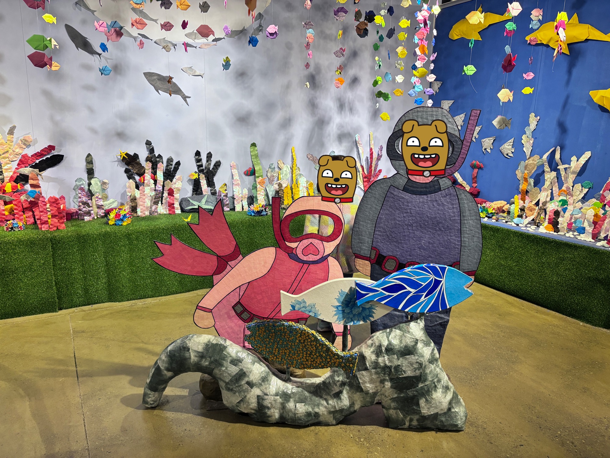 지하 1층 끝부분엔 바닷속 종이세상도 있었어요. 종이로 만든 바닷속 풍경이 제법 그럴싸했어요. 물고기 모빌 정도의 수준은 아이들과 한번 접어볼 만 하겠다, 싶었습니다^^;; 나머진 엄두도 안남....