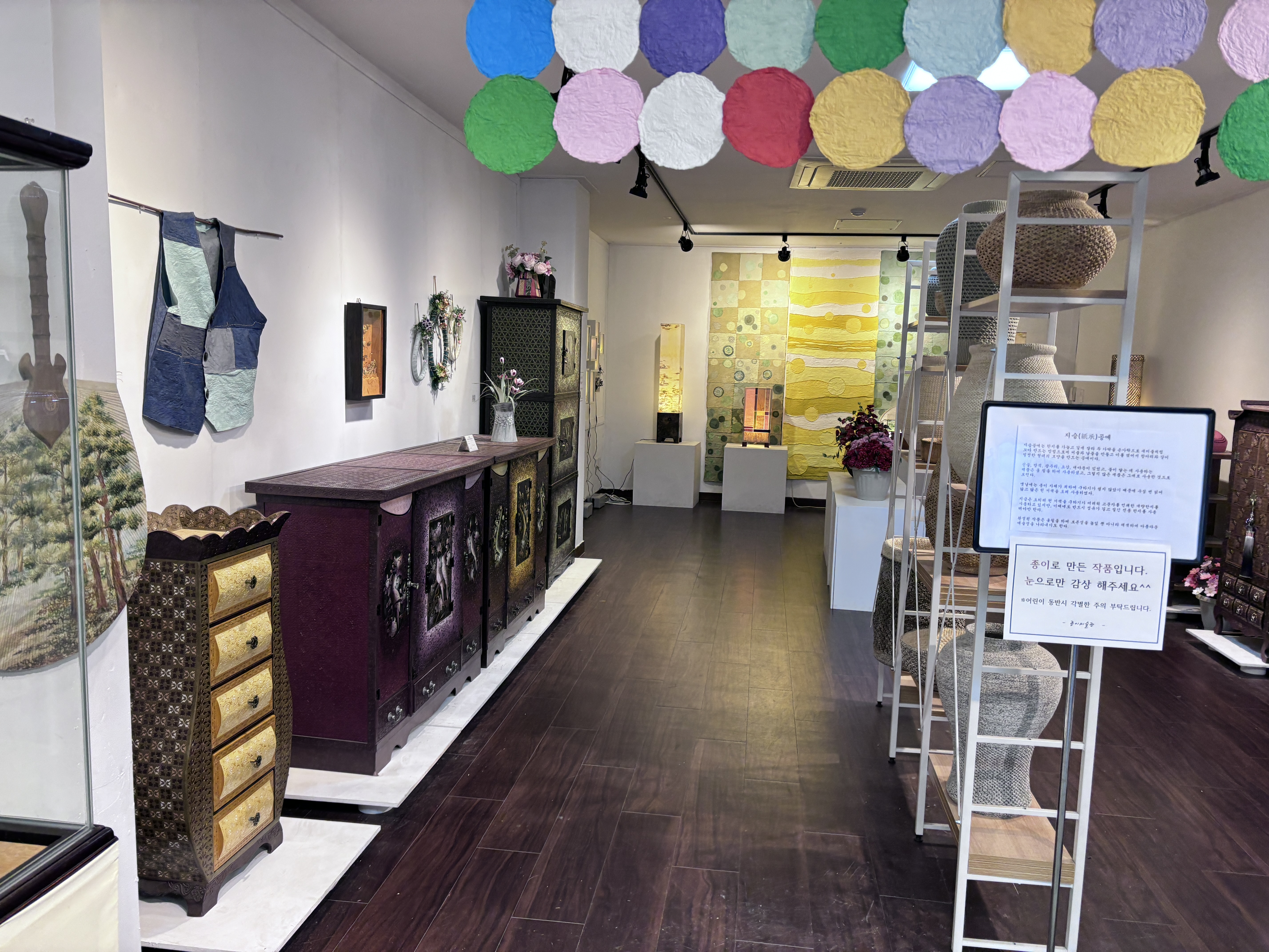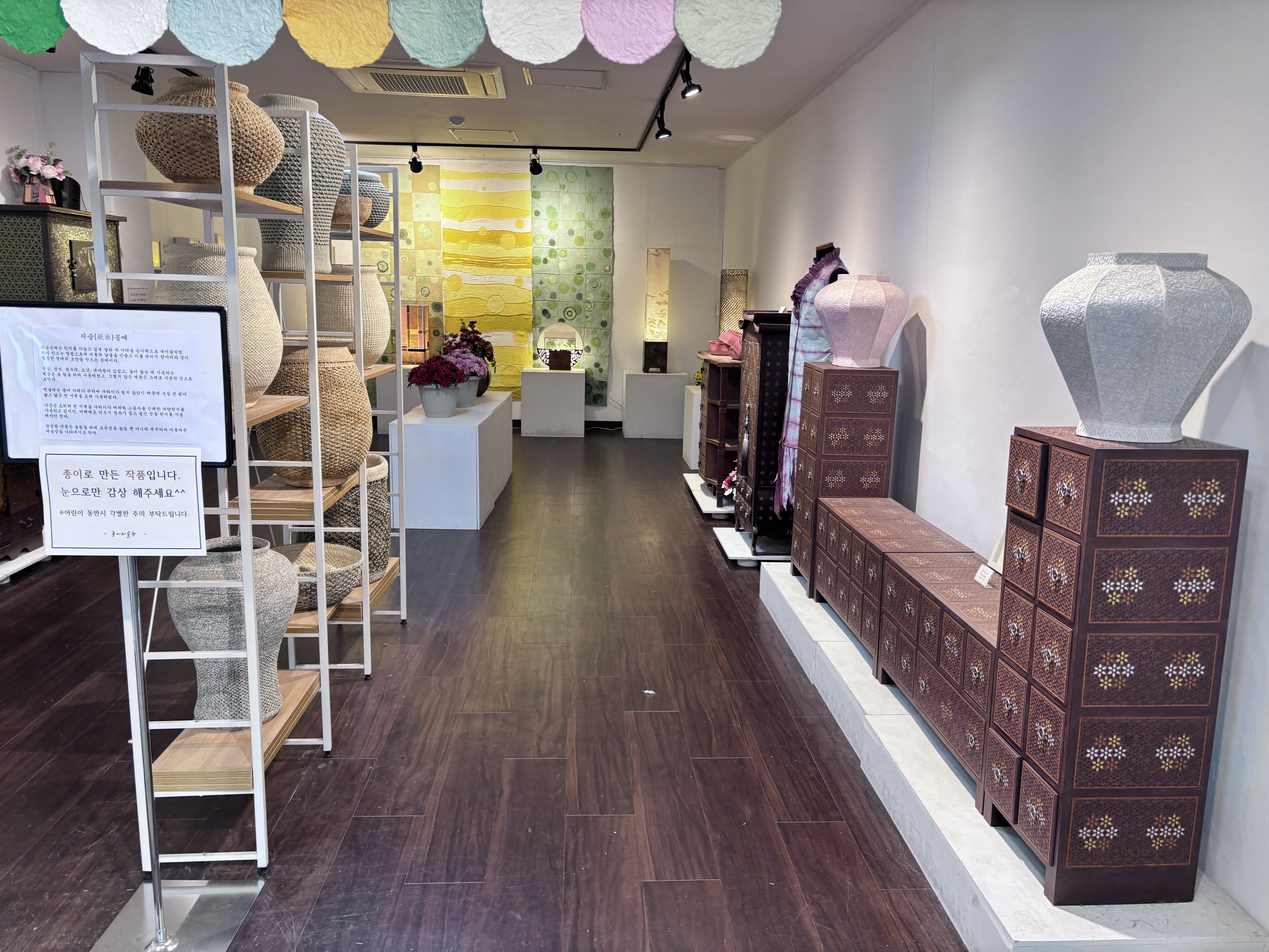 3층은 종이로 만든 가구같은 작품이 있었어요. 서랍, 항아리 같은거요. 어릴 때 수업시간에 한지를 여러번 겹치면 굉장히 단단해서 한지로 갑옷을 만들어 입었다는 얘기를 들은적이 있어요. 여기 있는 종이 가구들도 내구성이 꽤 좋을 것 처럼 견고해 보였답니다.