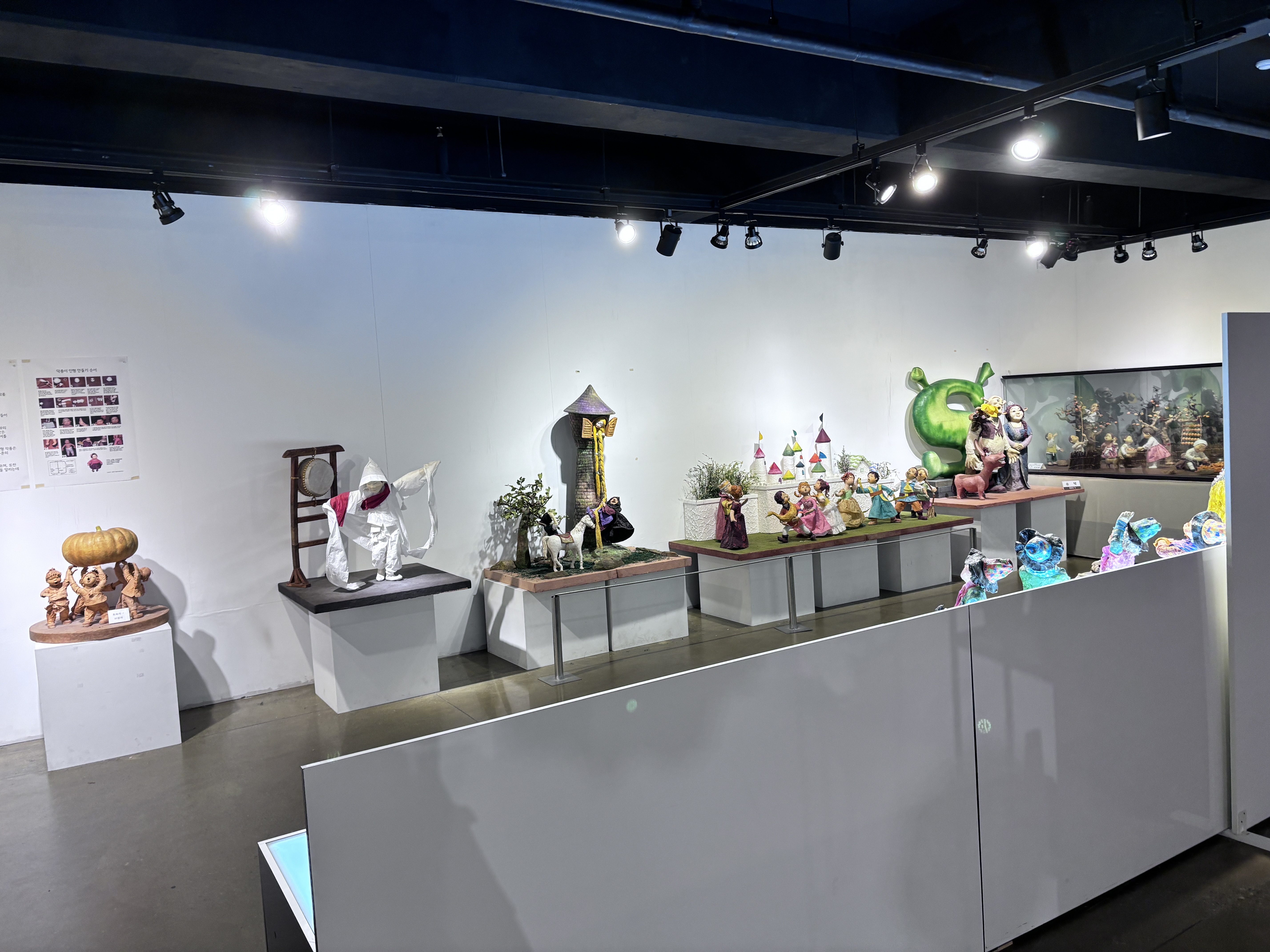 내려가보니 종이로 접은 피규어 같은게 많았어요. 아이들 눈높이에서 종이접기를 흥미롭게 바라볼 수 있을 것 같았어요. 그리고 안쪽엔 닥종이로 만든 닥종이 인형마을이 있었어요. 옛날 사람들이 지내는 마을 풍경을 닥종이로 만들어 전시해 놓아 아이들과 재미있게 이야기 나누며 보았답니다.
