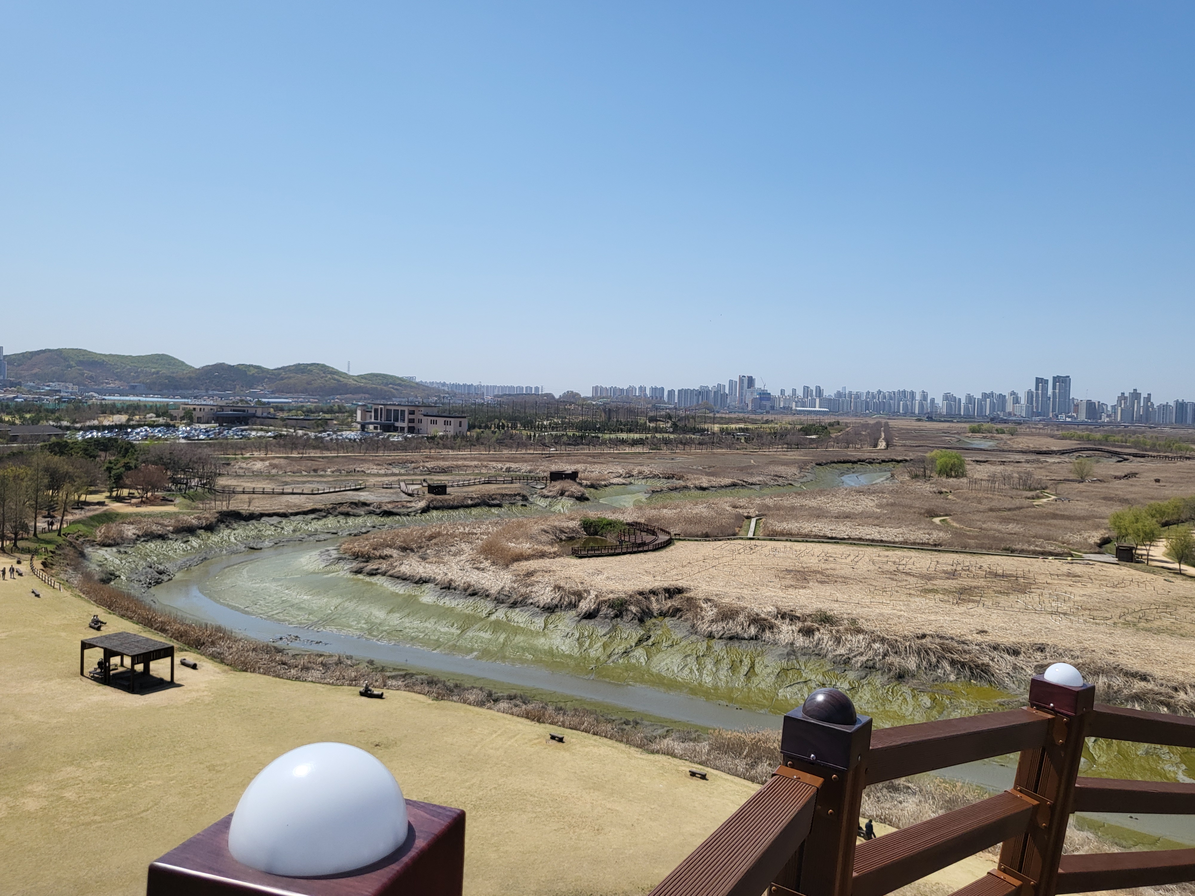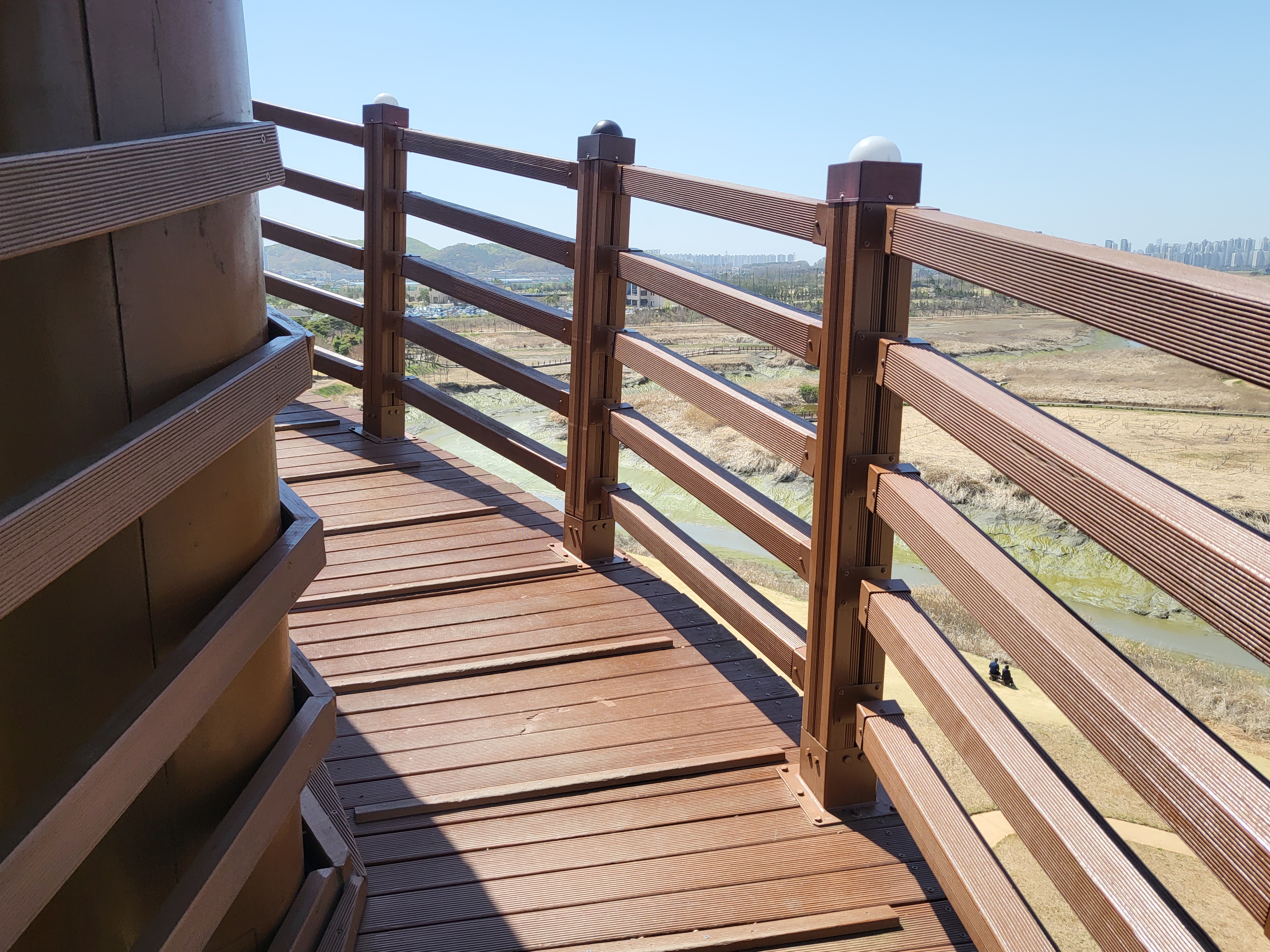 꼭대리를 향해 올라갈수록 바람에 흔들리는 전망대가 느껴져서 스릴있어요. 한층 한층 높아질때마다 내려다 보이는 생태공원의 풍경도 예술입니다.