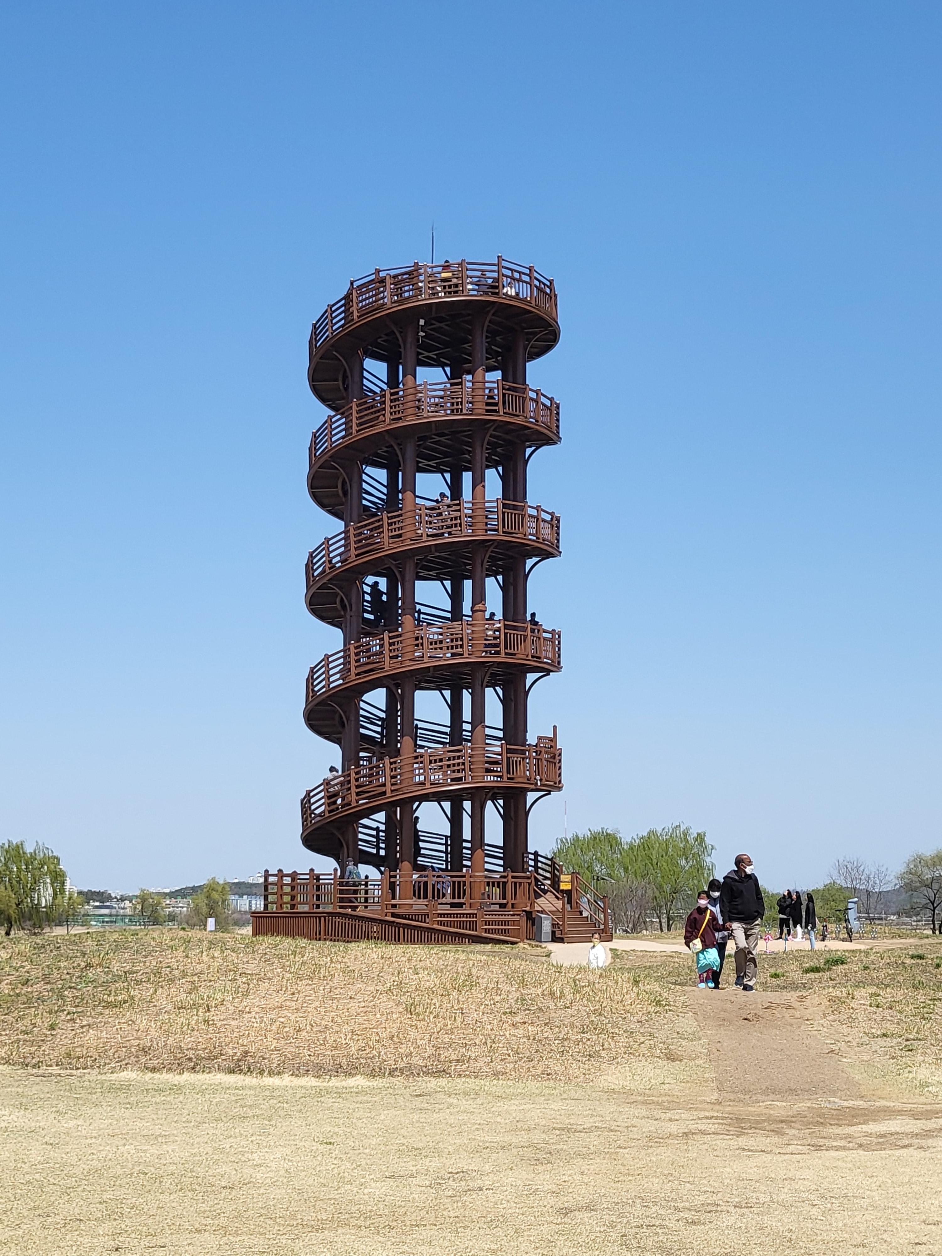 꼭대리를 향해 올라갈수록 바람에 흔들리는 전망대가 느껴져서 스릴있어요. 한층 한층 높아질때마다 내려다 보이는 생태공원의 풍경도 예술입니다.