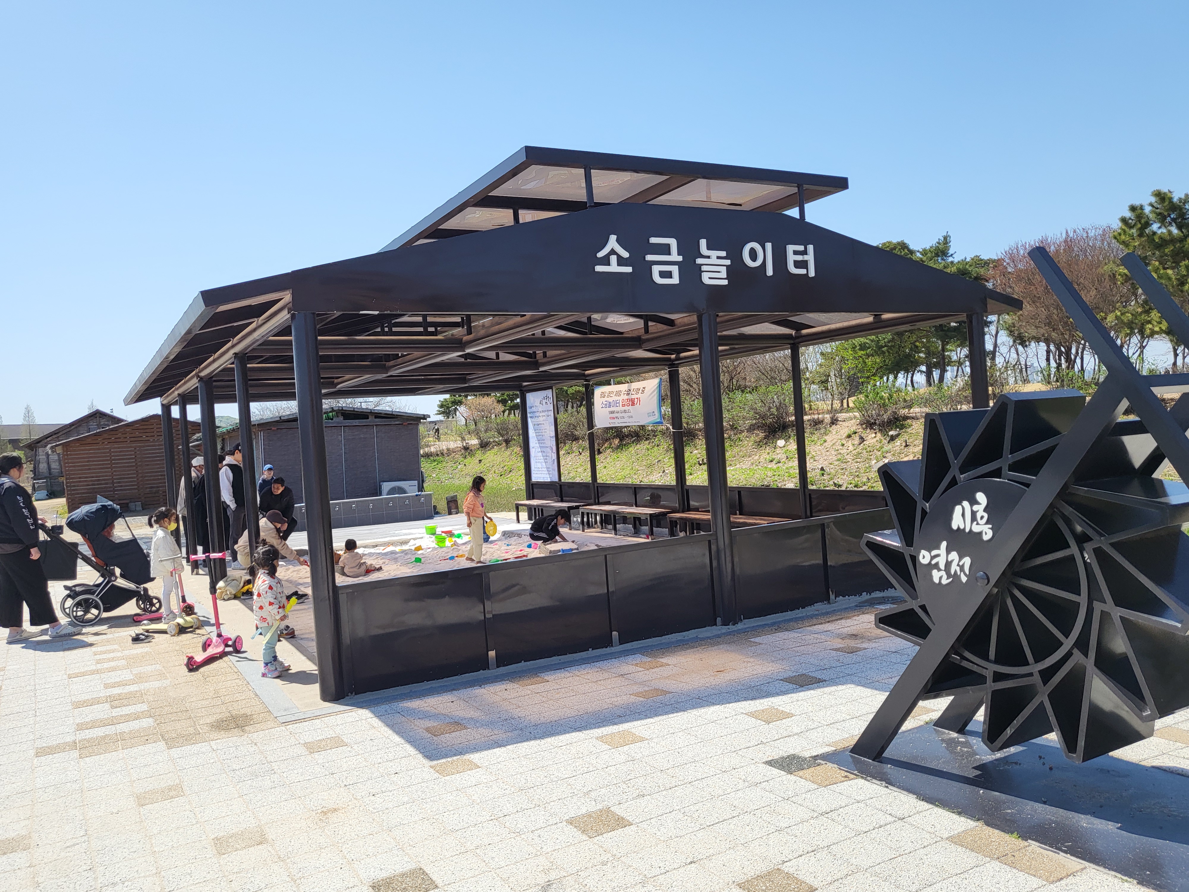 아이들과 함께오면 꼭 찾아오게 되는 소금놀이터 입니다. 굵은 소금을 모래대신 풀어놓았어요.