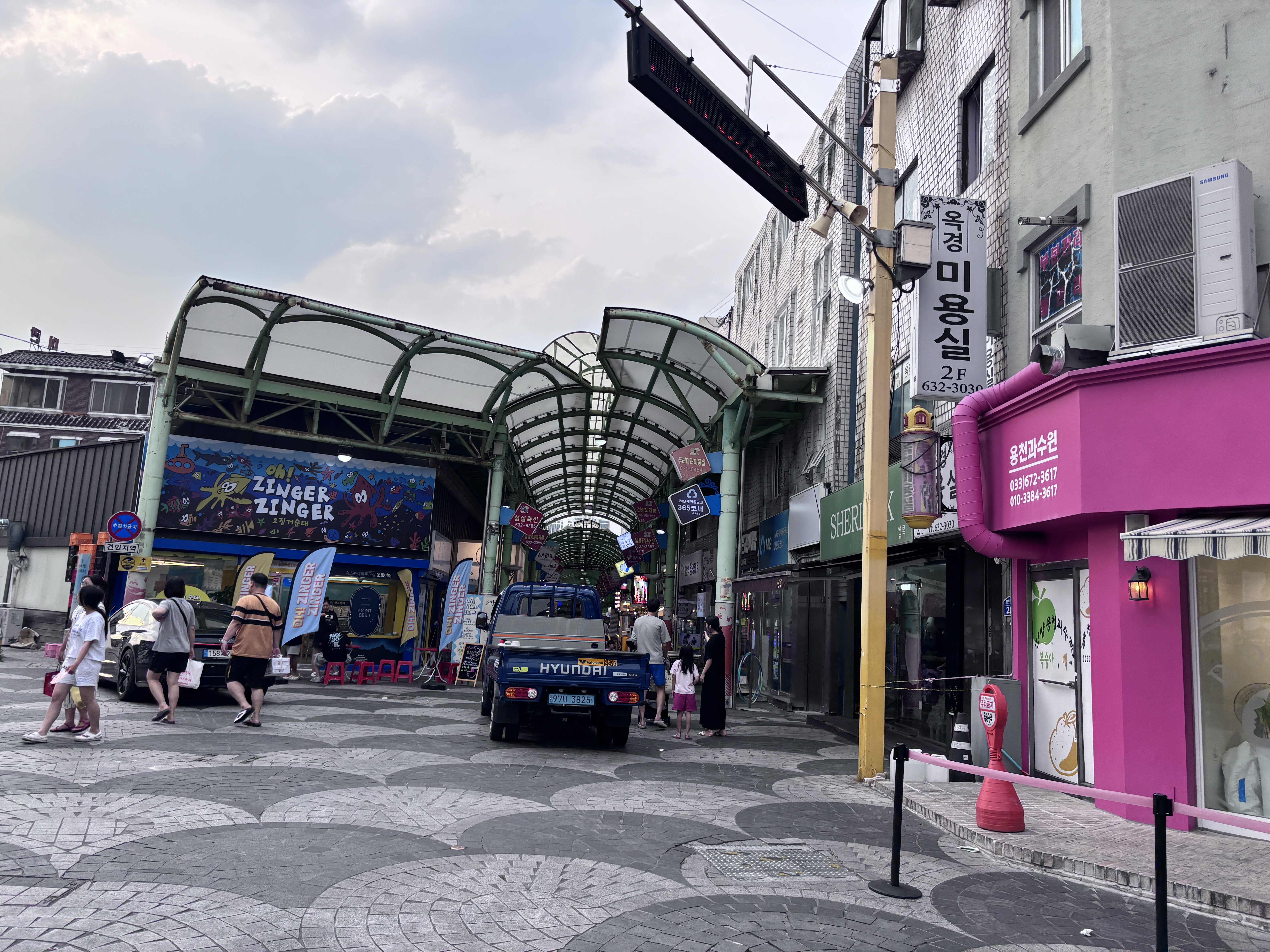 센텀마크 건물 밖으로 나오면 속초중앙시장과 이어져 있어요.