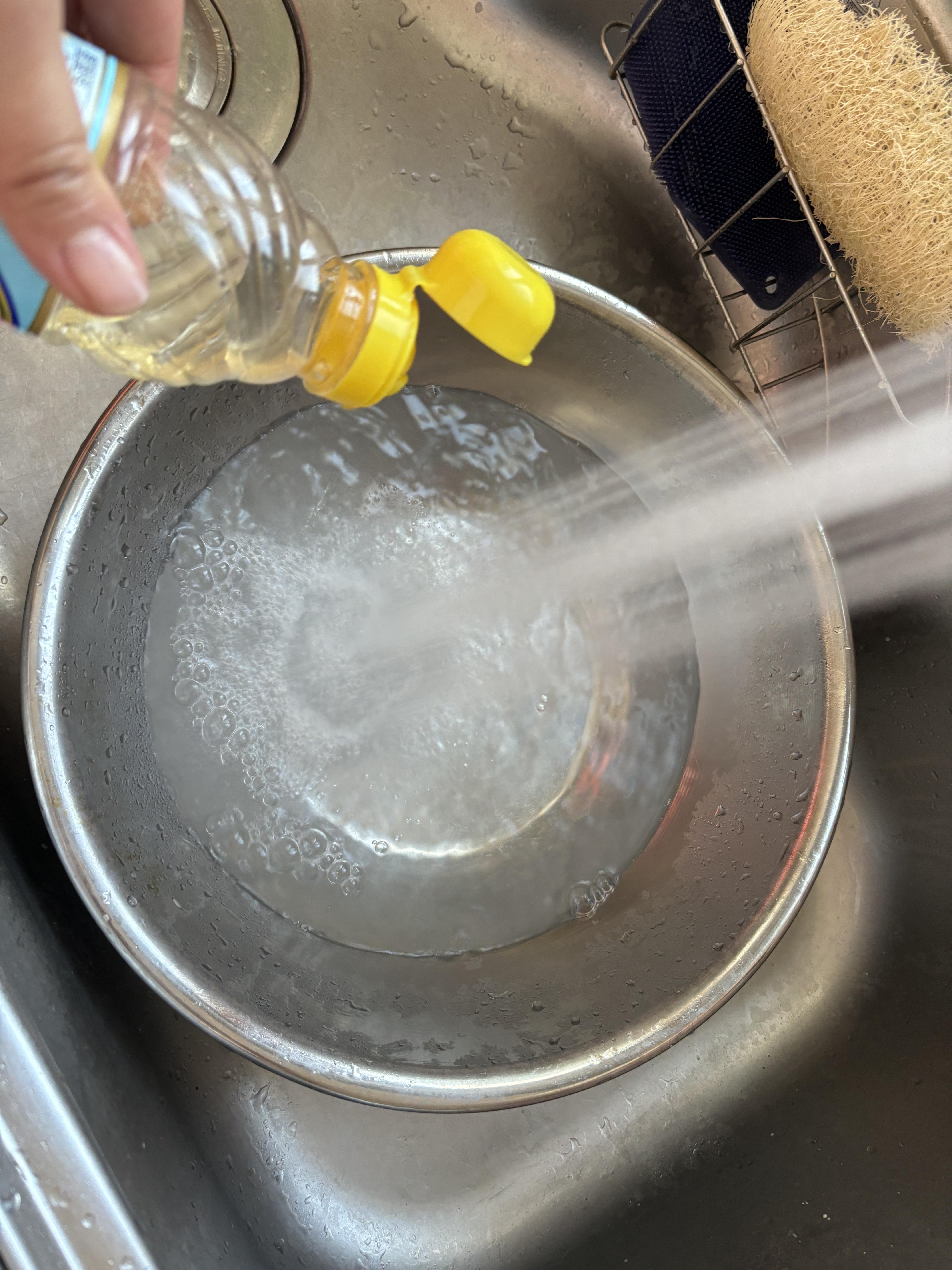 옷에 묻은 슬라임 제거는 사인펜이나 글라스데코보다 간단합니다. 그냥 따뜻한 물에 식초를 풀고 슬라임이 묻은 부위를 식초물에 잠기게 해주세요. 그리고 10분 정도 기다렸다가 비벼주면 바로 사르르 녹아서 사라져요.