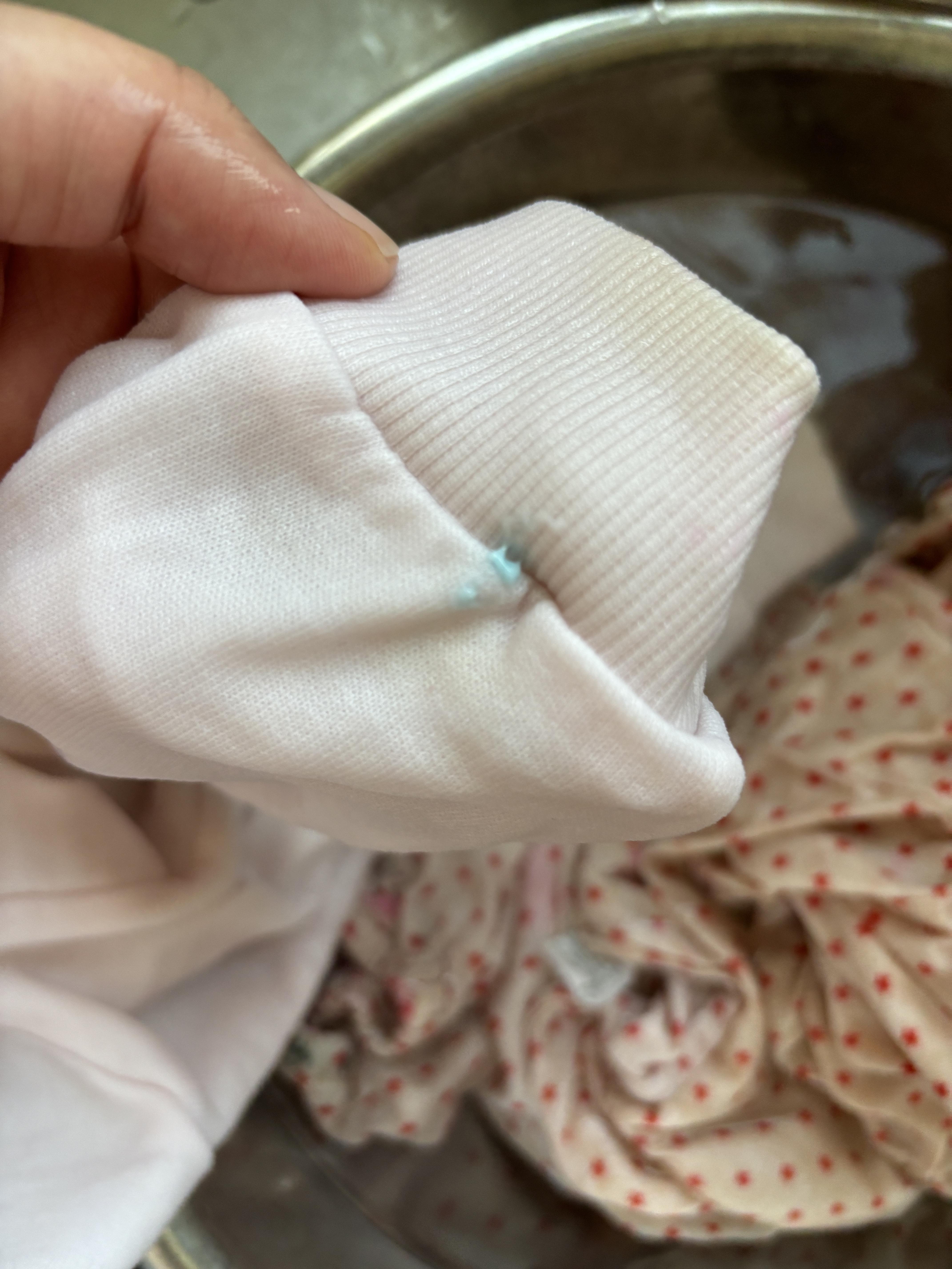 우선 말씀드린대로 따뜻한 물에 식초를 한번 쭉 짜넣고 슬라임 묻은 옷을 푹 담궈놨어요. 그리고 나서 저는 글라스데코와 사인펜묻은 옷 세탁을 했습니다ㅠㅠ 얘들아 엄마 힘들어........