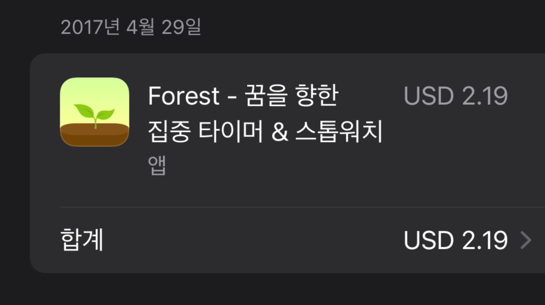 스마트폰을 들여다 보느라 낭비하는 시간이 너무 아까웠어요. 그래서 스마트폰을 열어보지 못하게 할 장치가 필요했어요. 알아보다가 포레스크라는 앱을 알게됐고, 찾아보니 2017년에 구매내역이 있네요. 아이폰을 구입할 때마다 이 앱을 설치해서 사용했어요. 그치만 꾸준히 사용하진 않았는데 최근에는 거의 매일 활용하고 있습니다. 앞으론 점차적으로 구독제로 요금제가 바뀔 계획이라고 해요. 아직 우리나라는 언제 그렇게 바뀔 지 모르겠어요.