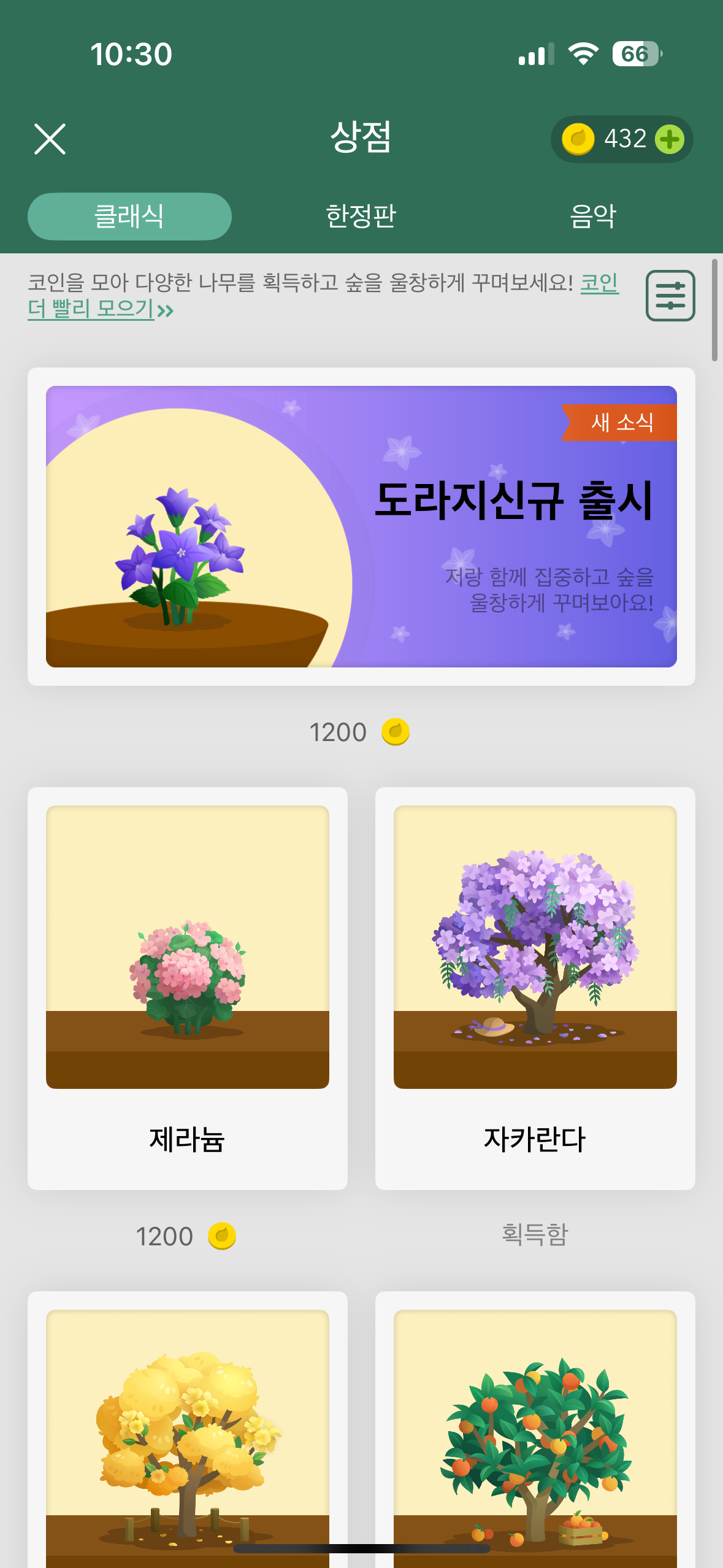 Forest 안드로이드 다운은 여기를, 앱스토어 다운은 여기서 확인해 보시면 됩니다. 저도 확인해보니 지금은 가격이 꽤 올랐네요. 이 앱은 사람들이 스마트폰을 내려놓고 집중해서 쌓인 시간을 코인으로 환산해 줘요. 그 코인은 실제로 진짜 나무와 교환할 수 있어요. 저는 예쁜 꽃과 배경음악을 사는데 모은 코인을 탕진해서 2그루밖에 심지 못했네요ㅠㅠ