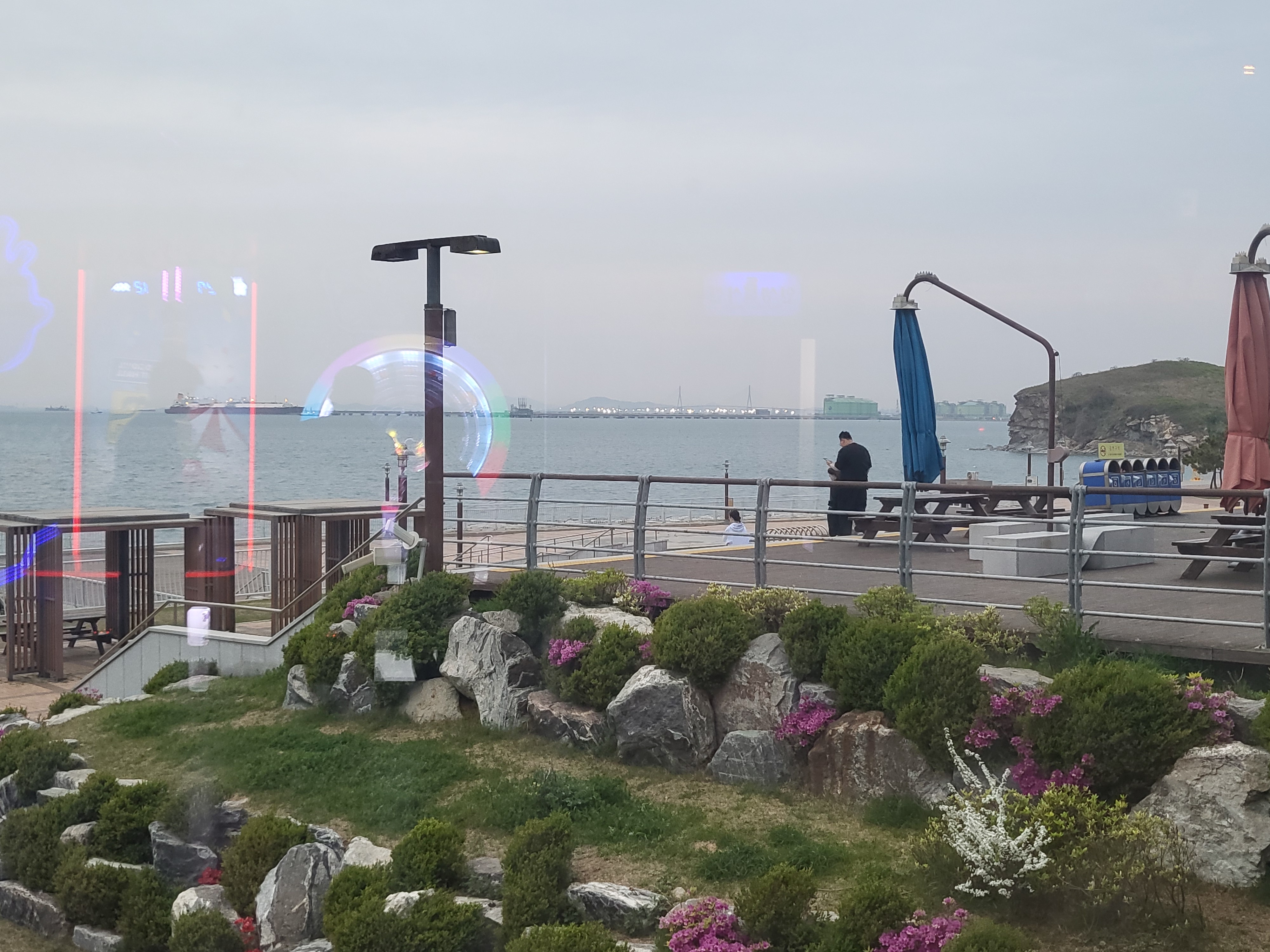 이루나 타워 전망대는 이렇게 원형으로 쭈욱 유리벽이 둘러져 있어 경치를 감상하기 좋아요. 남산타워가 서울을 한눈에 내려다 볼 수 있는 점이 매력적이라면 달전망대는 뻥 뚫린 바다를 볼 수 있다는 점이 매력적이었어요.