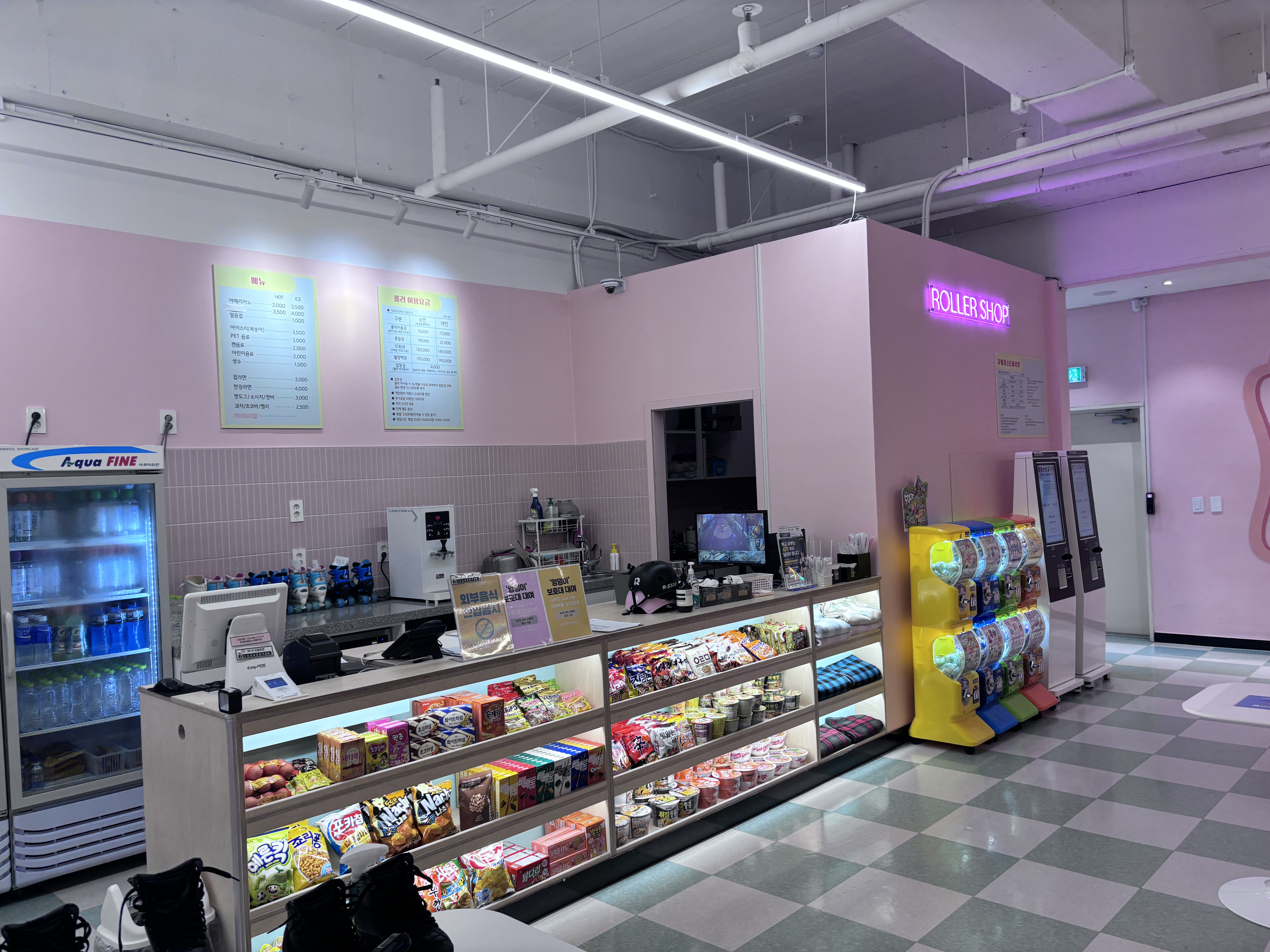 제가 가본 곳 중 가장 최근에 생긴 곳 답게 장비가 깨끗했어요. 아무래도 개인 롤러가 아직 없기 때문에 대여해주는 장비가 깨끗하게 관리되어 있는지 먼저 살펴보게 되더라고요. 포토존도 많아서 SNS 하시는 분들은 정말 좋아하실 것 같아요. 키오스크에서 결제하시면 입장시간이 적힌 라벨스티커를 옷에 붙여주십니다.