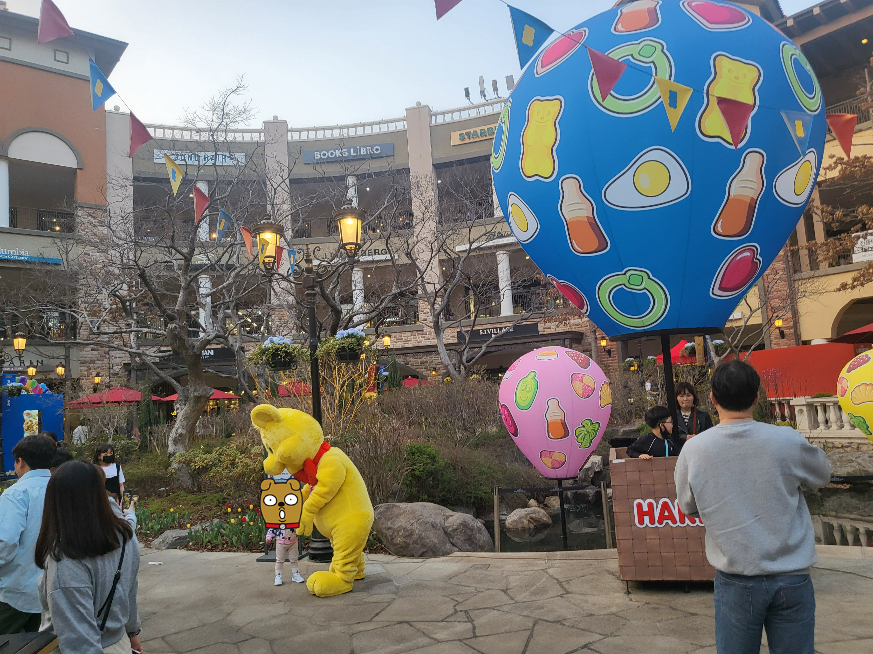 3층 북스리브로만 들렸다가 집에 가려고 했는데 아이들이 내려가보자고 해서 내려갔어요. 귀여운 곰젤리가 그려진 벌룬도 보이네요. 주말이라 그런지 센트럴가든에서는 다양한 하리보 이벤트가 열리고 있었습니다.