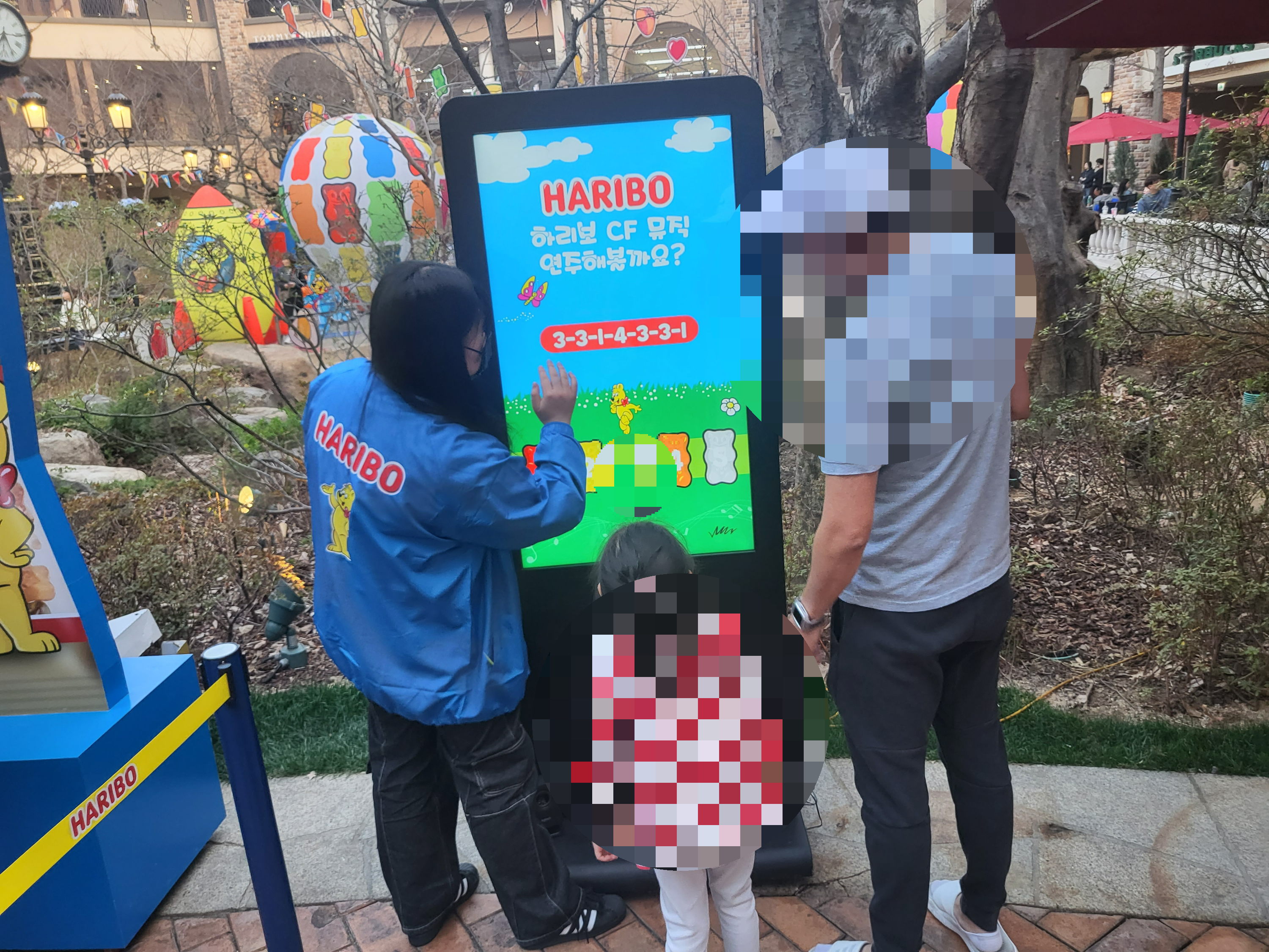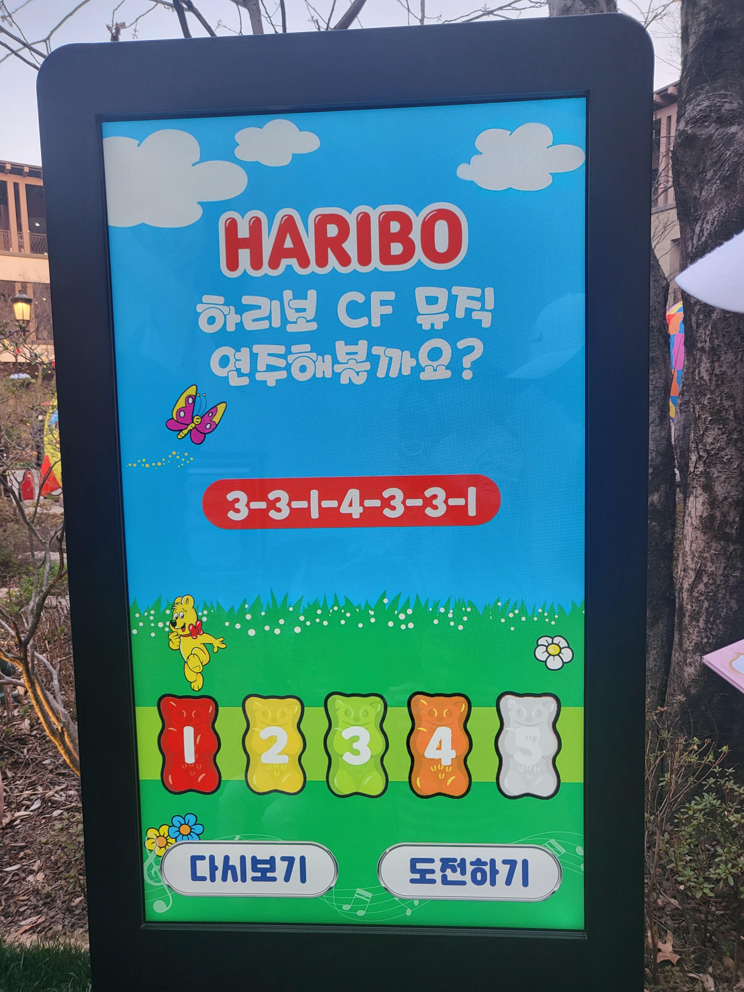 하리보 CF 뮤직은 화면에 나온 숫자를 순서대로 누르면 나와요. 바로 옆엔 같은그림 찾기 이벤트가 동시에 진행되고 있어요. 이벤트에 참여하면 직원분이 미니 골드베렌을 하나씩 나누어 줍니다. 저희 아이들이 가장 좋아하는 젤리는 역시 하리보 곰젤리더라고요ㅎㅎㅎ 색다른 젤리도 사먹어보았지만 결론은 하리보...