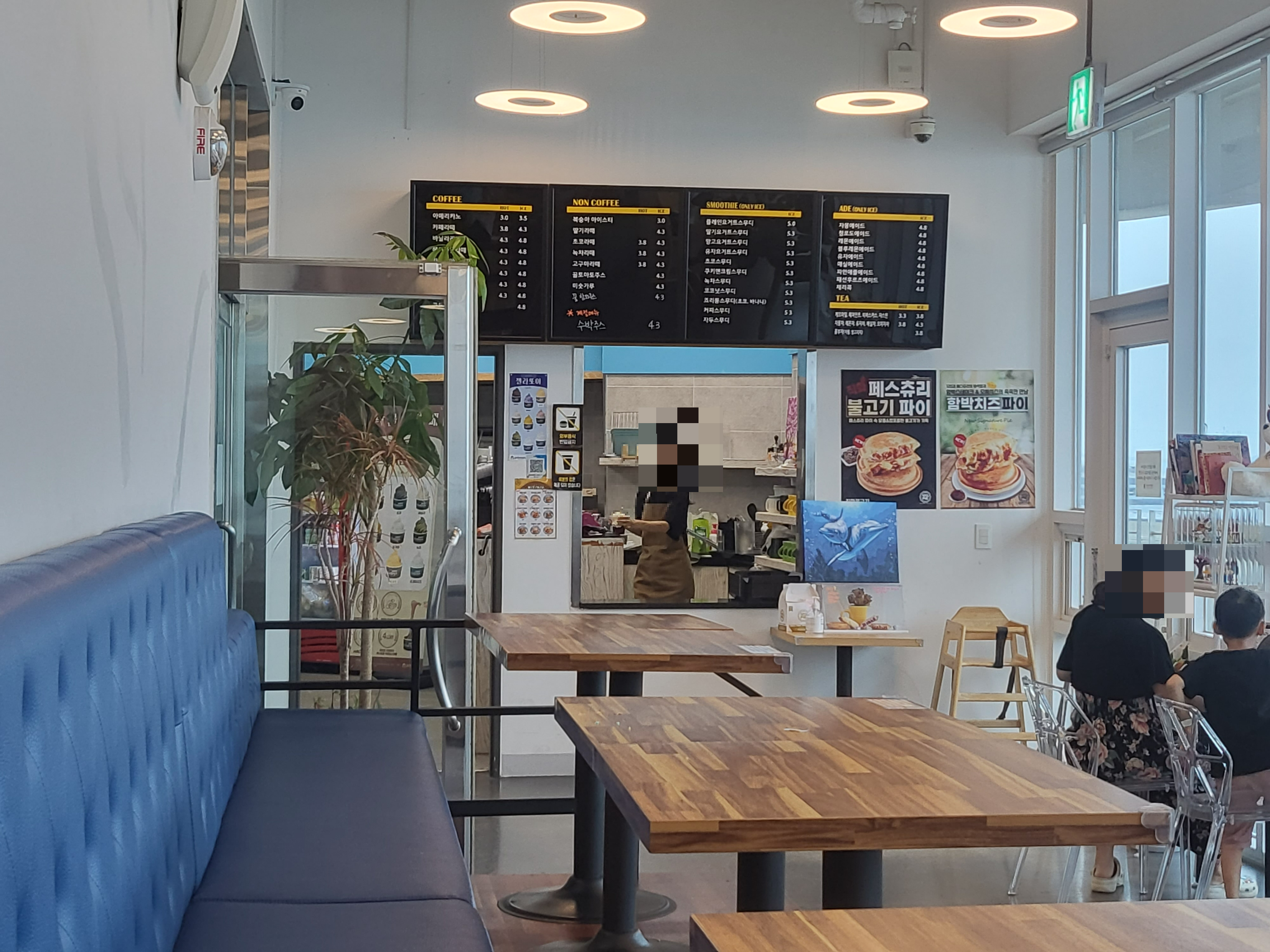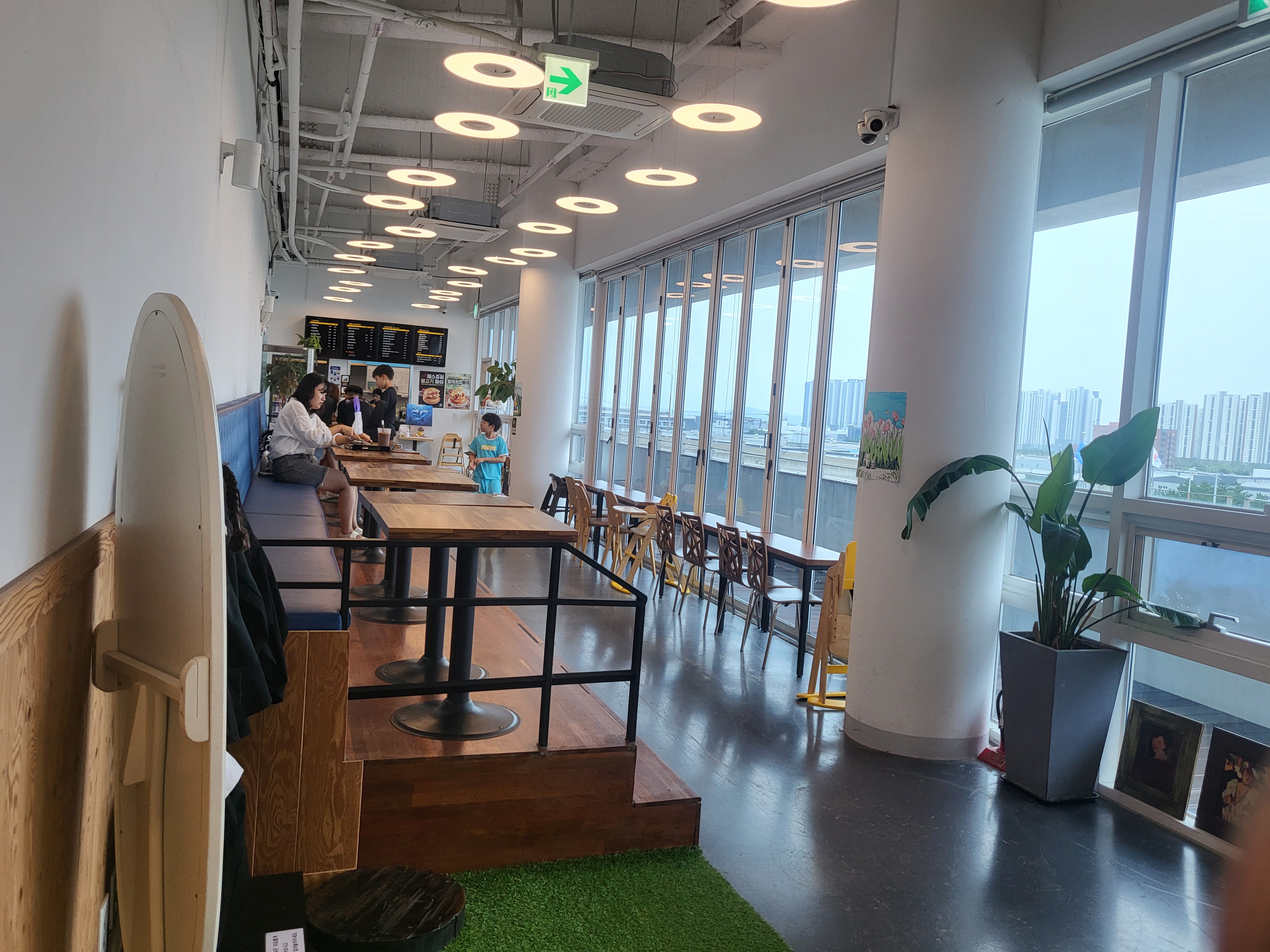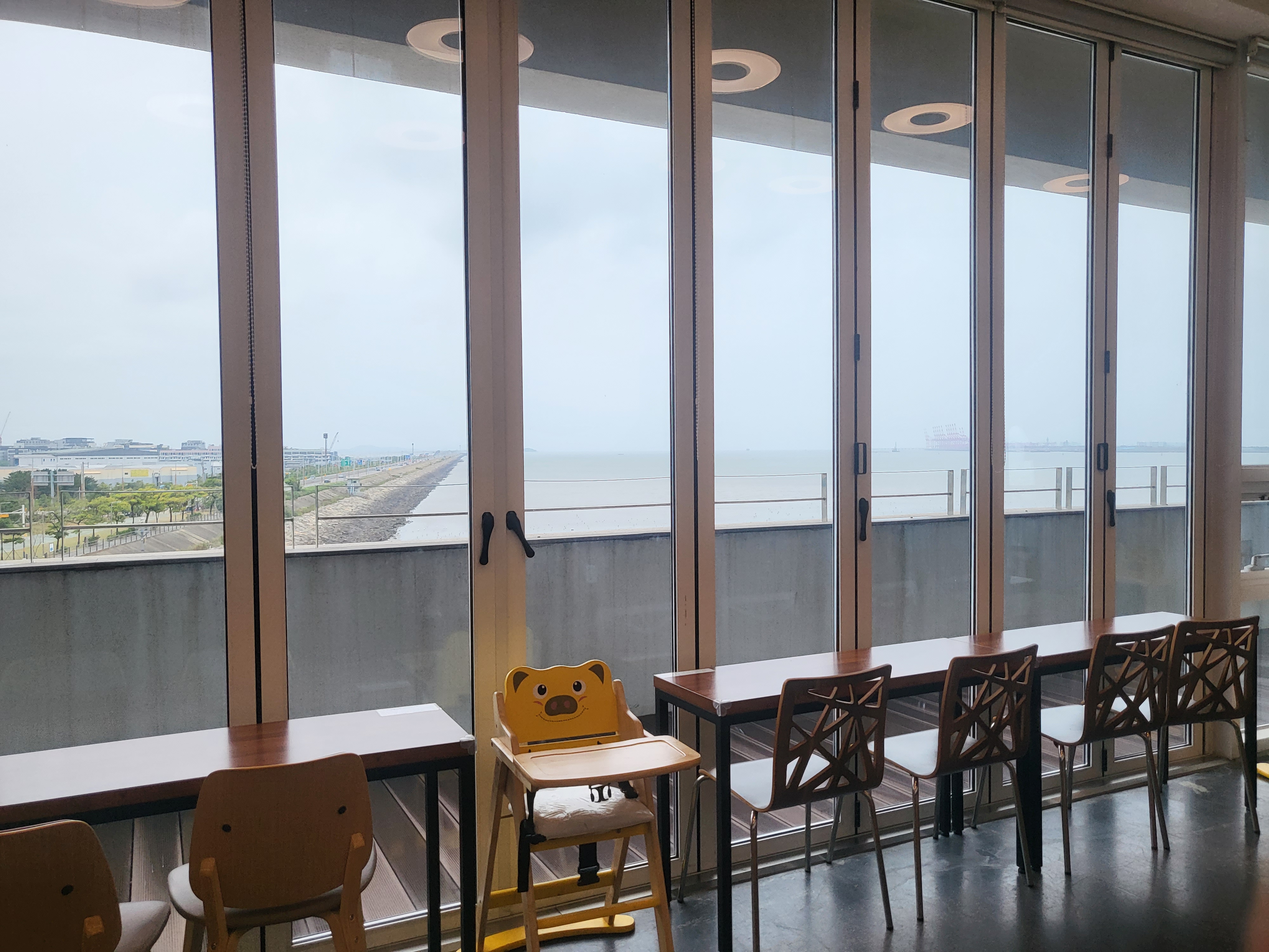 카페는 이렇게 폭이 좁고 기다랗게 구성이 되어 있었어요. 모두 바다를 바라보며 커피를 마실 수 있도록 세팅이 되어있더라고요. 그래서 힐링이었어요. 전좌석 오션뷰인듯! 바다뷰는 언제 봐도 질리지 않는 것 같아요.