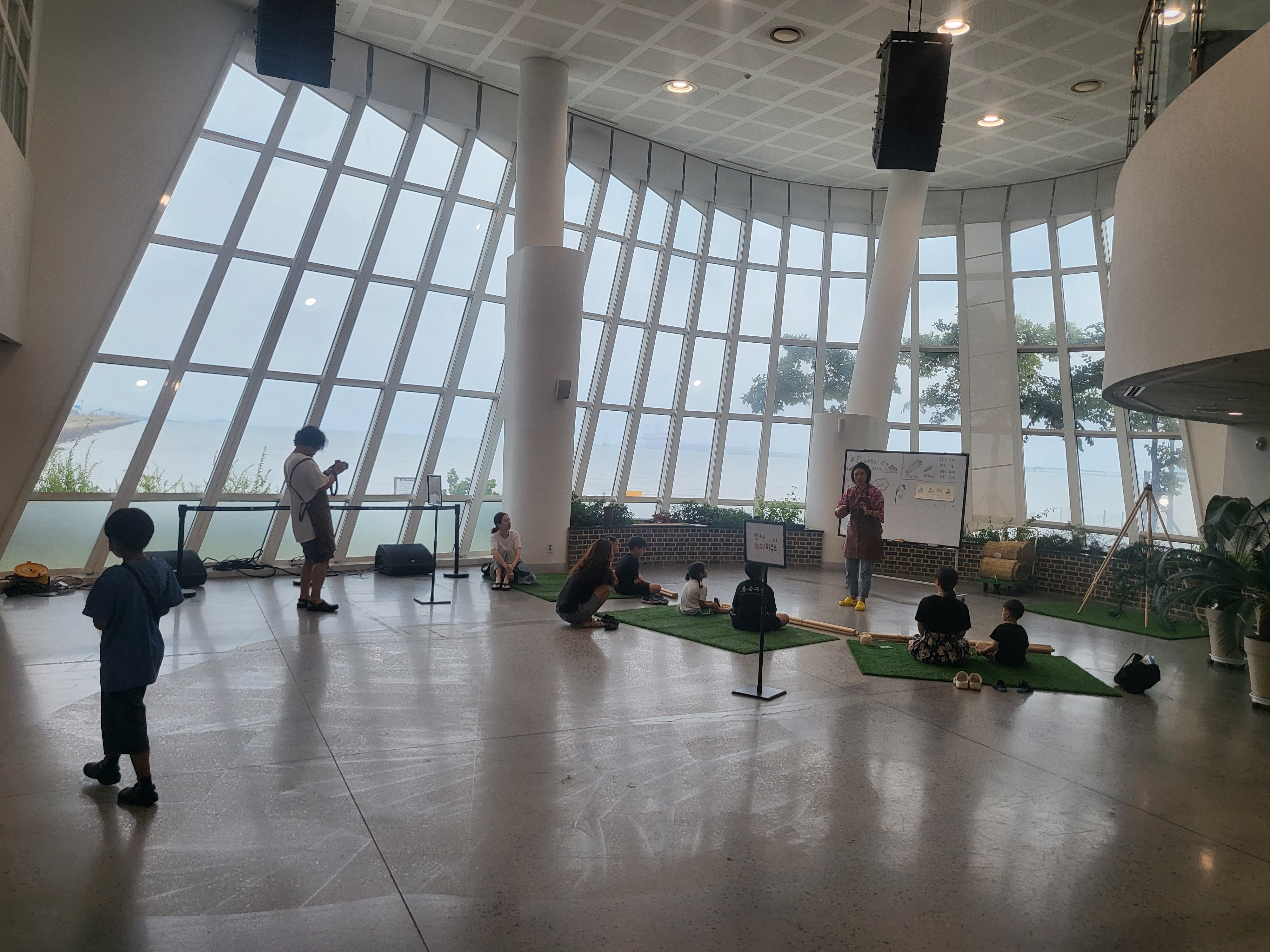오이도 박물관 메인 로비에서는 사전에 움집만들기 체험을 신청했던 사람들이 수업을 듣고 있었어요. 작은 움집인 줄 알았는데 사람이 실제로 들어갈 수 있을 정도의 장난감 텐트 사이즈더라고요! 오이도 박물관 홈페이지에 신청 절차와 프로그램은 소개되어 있다고 하니 참고 부탁드립니다.
