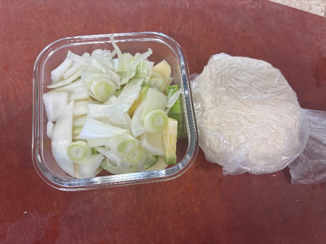 손질한 야채와 반죽한 밀가루는 모두 냉장고에 넣어뒀다가 아이들이 집에오면 육수를 끓이면서 바로 수제비를 떠줍니다.