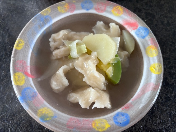 이렇게 잘 알면서 결국 저는 두꺼운 수제비를 만들었네요.... 사실 원래 이것보다 훨씬 얇게 잘 뜨는데(왕변명) 이번엔 반죽이 좀 묽게 되서 그런 것 같아요. 아쉽지만 그래도 빵식감은 아니었습니다ㅜㅜ 완성된 수제비는 마른 체격의 5, 8세 여자아이들이 남기지 않고 홀랑 다 먹은 양이니 참고하셔서 만들어 주시면 됩니다. 오늘처럼 비오는 날에 수제비 딱이지 않나요? 그럼 오늘도 건강한 하루 되세요!