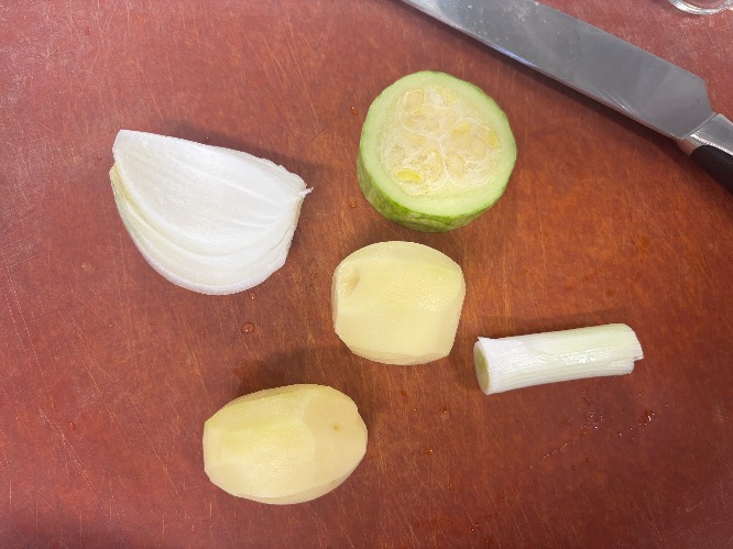 건더기: 양파 조금, 애호박 조금, 감자 조금