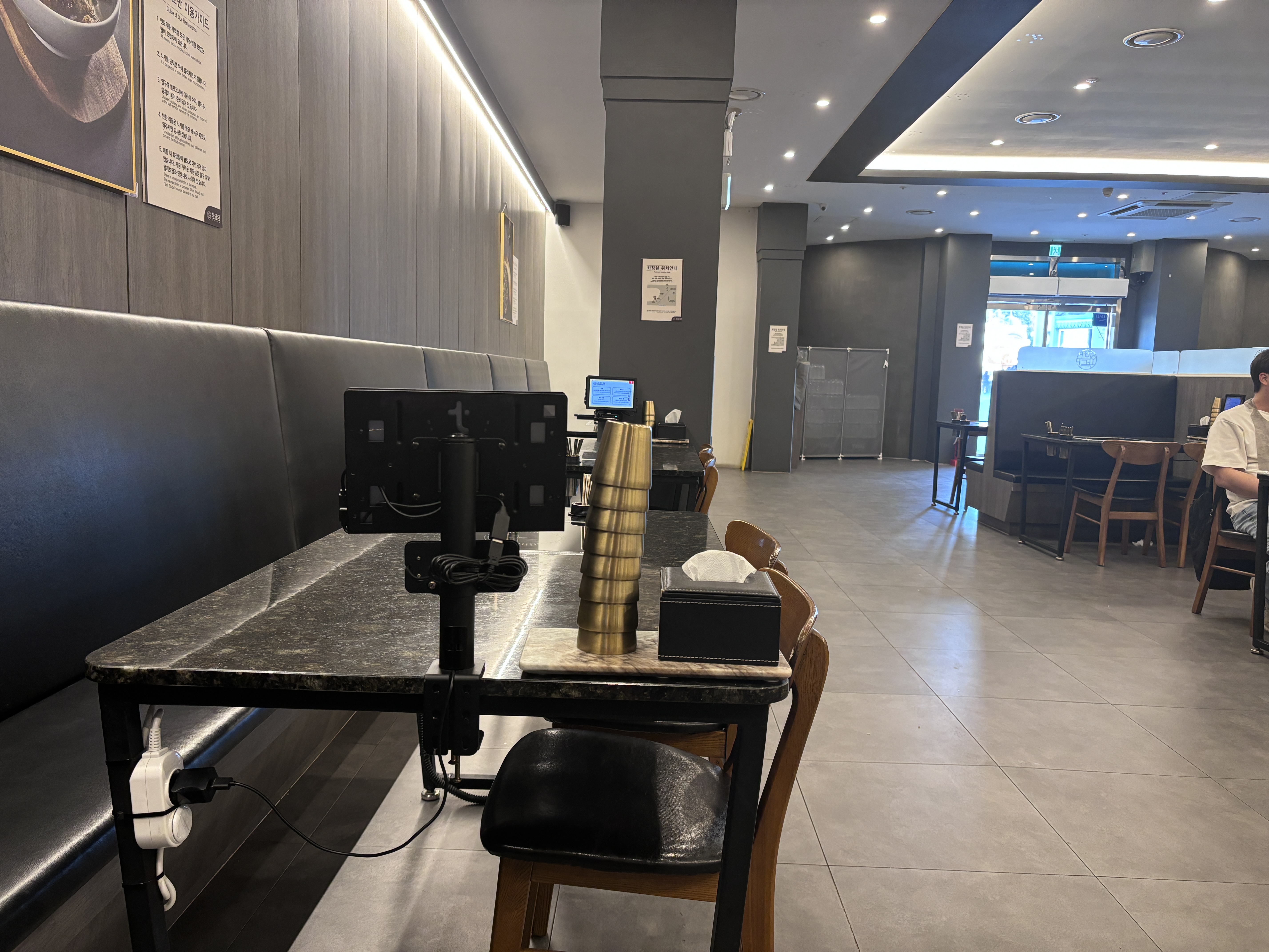 한와담은 따로 솜 적립이 되지 않는 매장이예요. 솜 적립에 쏠쏠한 재미를 느끼며 돈쓰고 다니는 신랑에겐 다소 아쉬웠던 부분입니다. 게다가 물은 호텔 미니바처럼 제공된거 외에 더 마시고 싶으면 추가로 1000원을 결제해야 해요. 에버랜드 내에 있는 다른 가게엔 정수기 이용이 자유로운데 물을 마시려면 돈을 더 내는것도 모자라 플라스틱 쓰레기까지 추가로 만들어야 해서 좀 마음이 불편했어요.