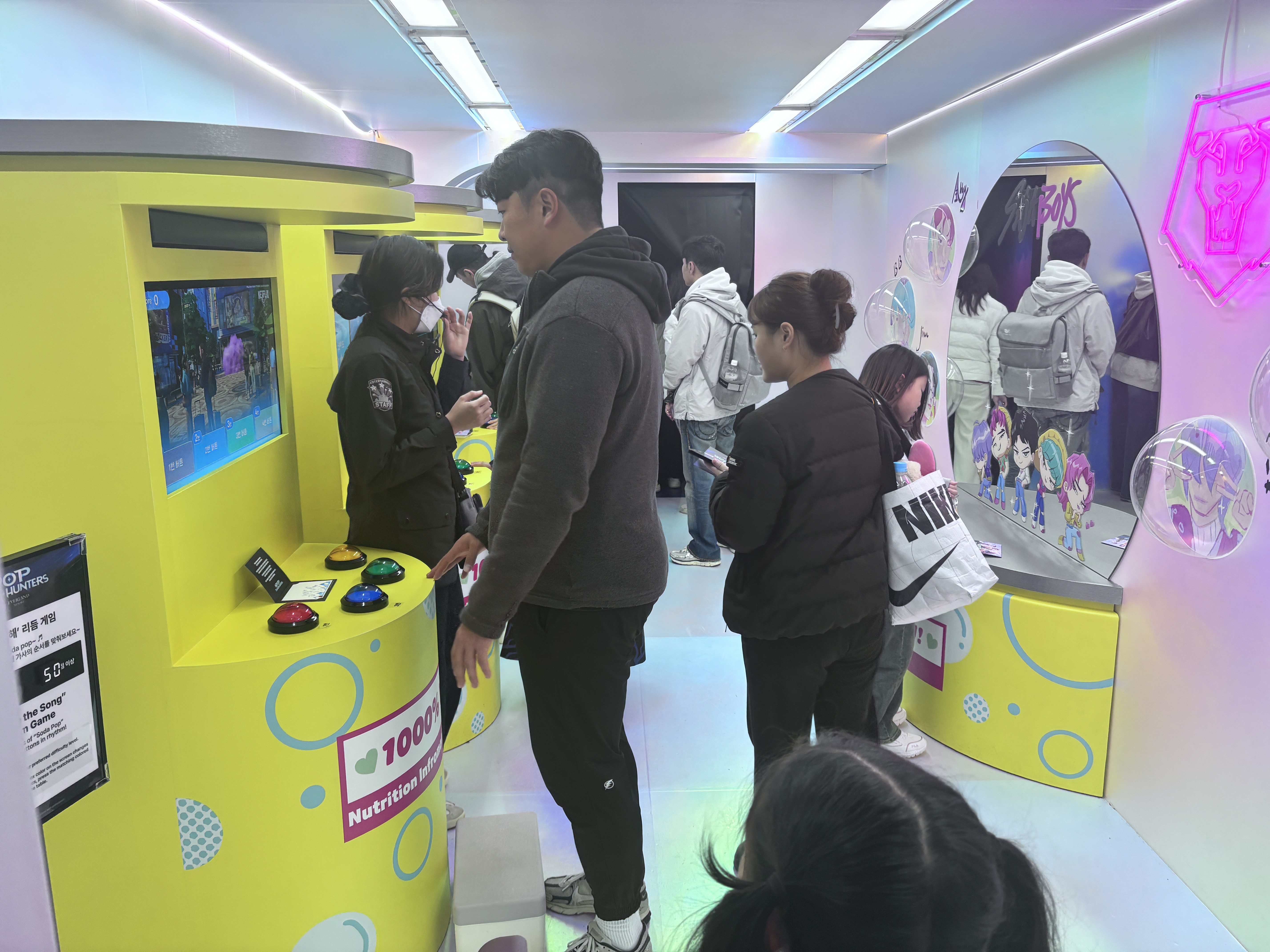 댄스 리듬게임이 아까 앞에서 말씀드렸던 NFC 키링을 주는 이벤트를 하는 곳입니다.