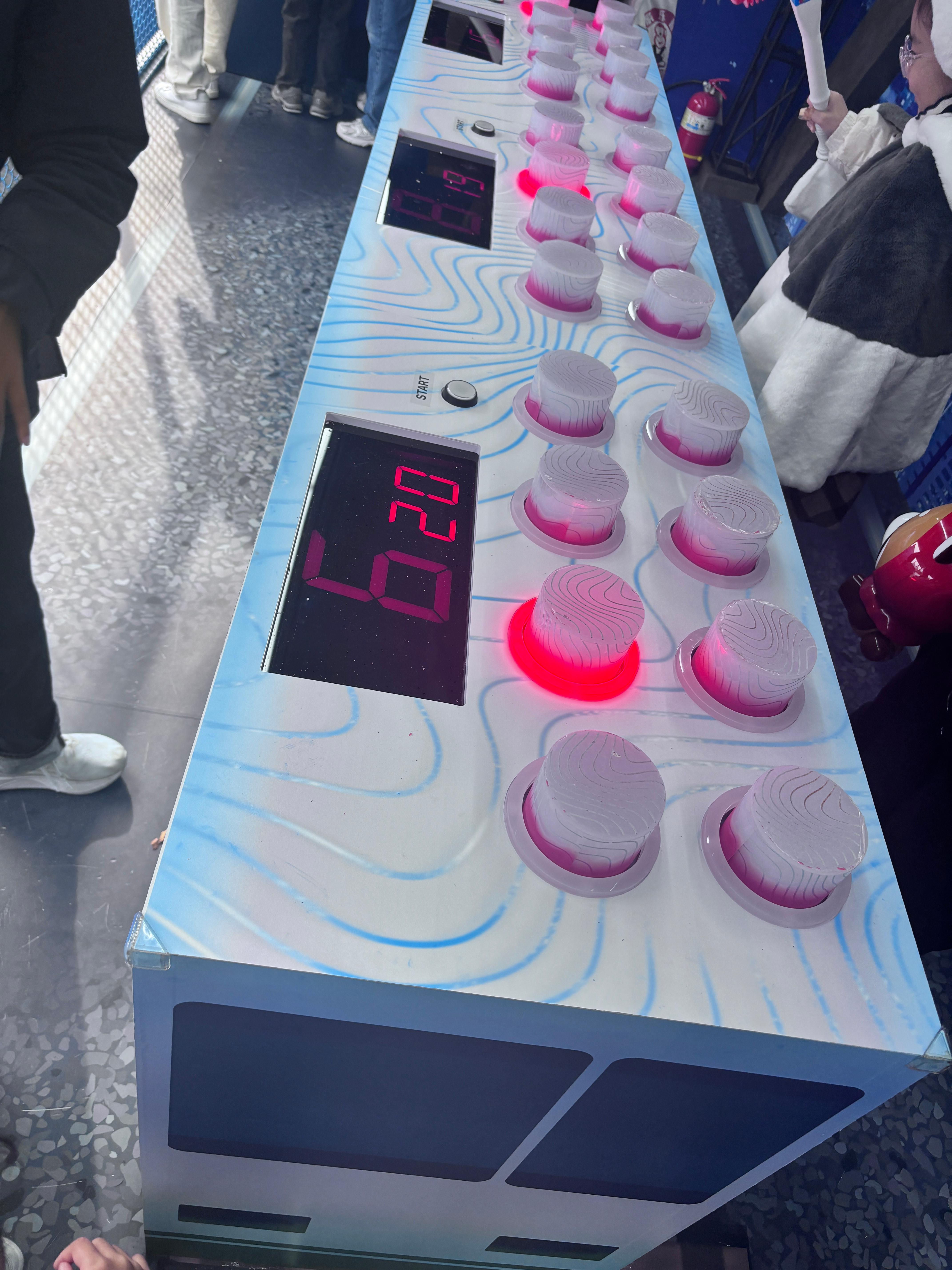 그리고 두더지 게임처럼 불이 들어오는 버튼을 내리치는 게임을 합니다.