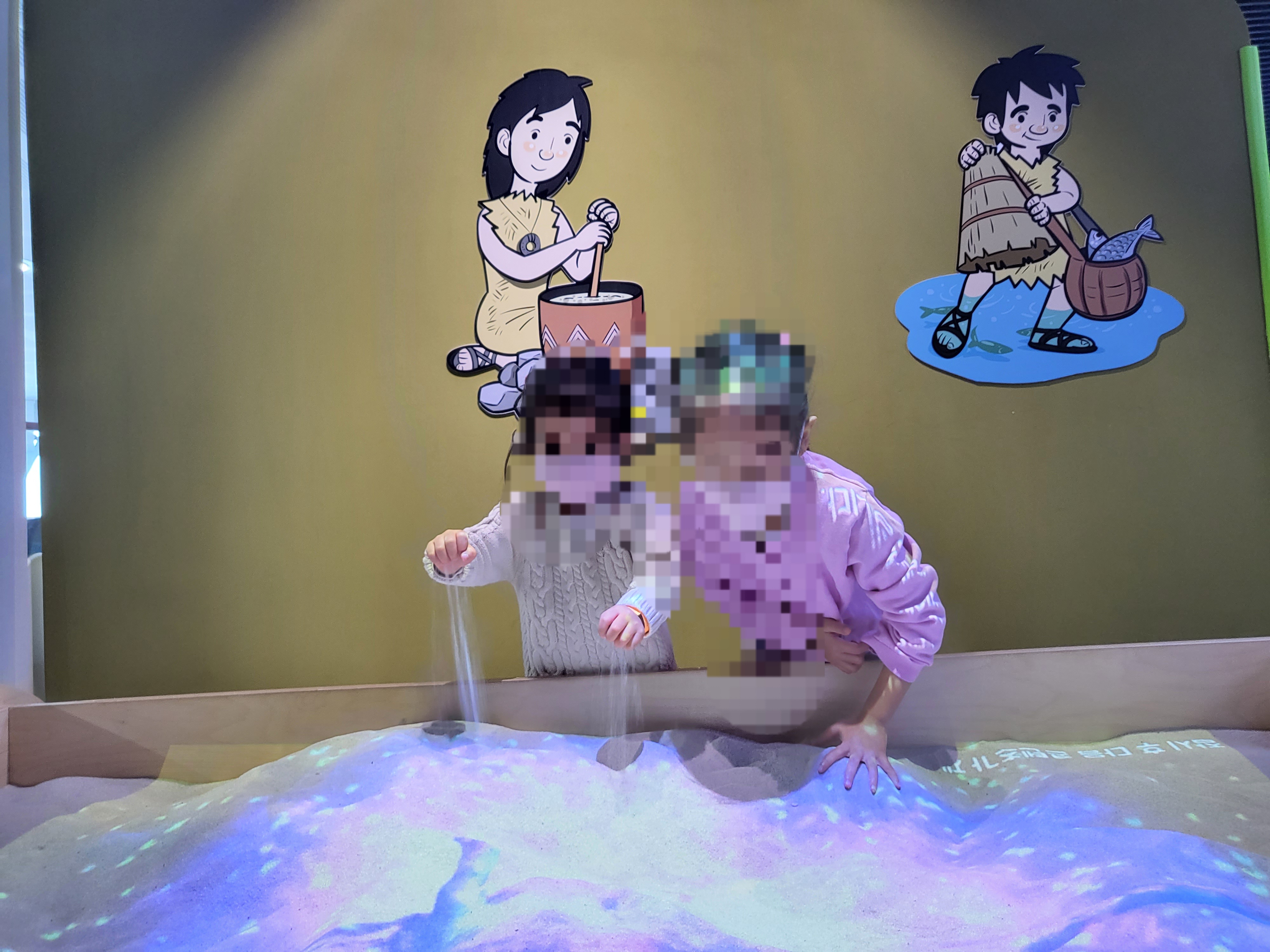 상설전시실도 아이들이 꽤 좋아합니다. 선사시대가 무엇인지 아직 관심도 없는 꼬마들은 그저 작살로 물고기 잡을 수 있는 체험하는 곳, 토기에 직접 그림을 그려 인쇄하는 곳, 기념사진을 촬영할 수 있는 포토존 등이 있기 때문에 좋아해요.