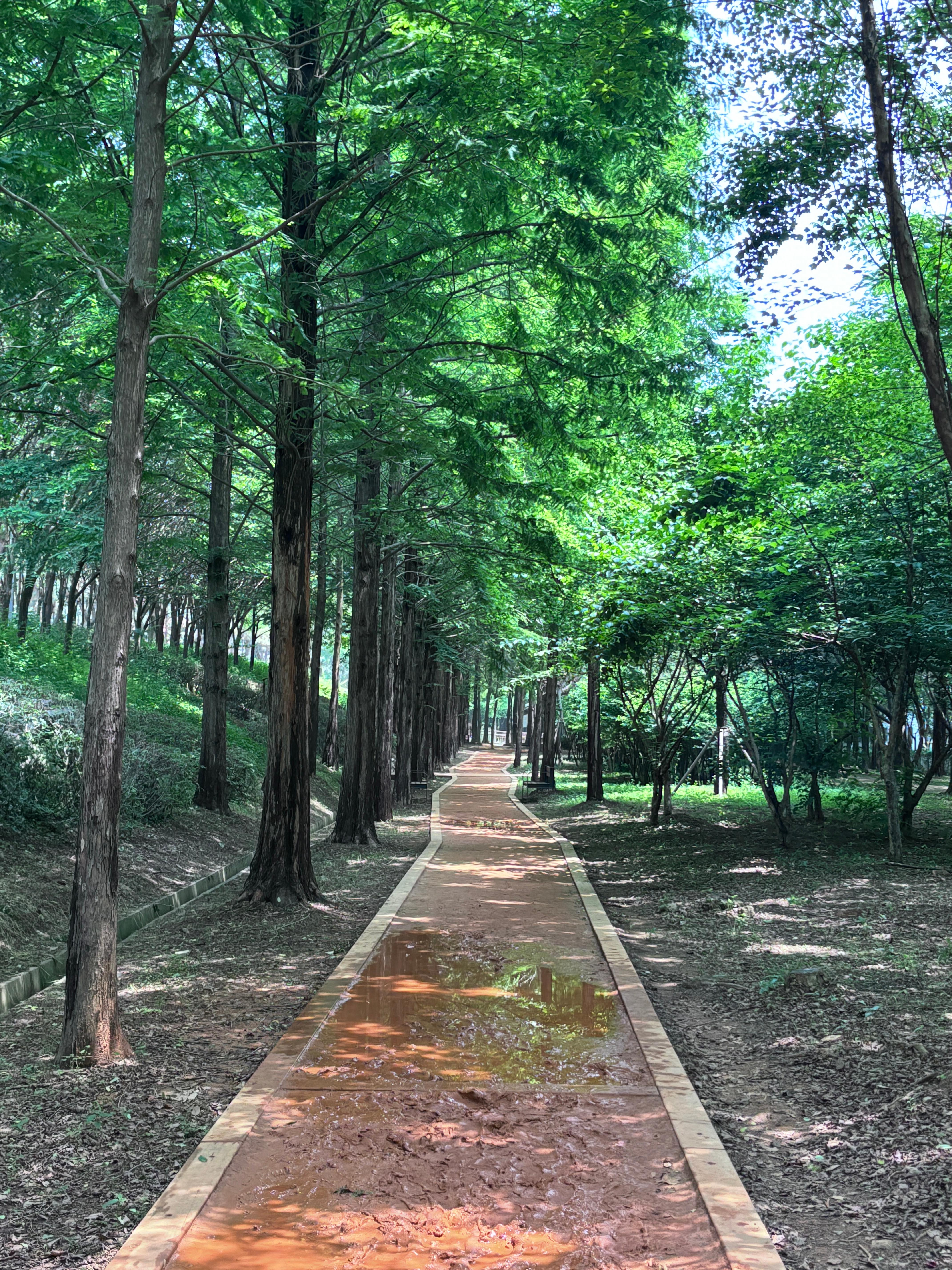 이 길은 양쪽으로 나무가 제법 울창하게 자랐기 때문에 대낮에 가도 그늘이 많더라고요. 모자나 양산같은 것 없이도 자외선을 피해 시원한 산책을 할 수 있어 더 좋았어요. 조성된지 오래 된 동네는 나무가 커서 산책하기 너무 좋더라고요. 여기에 비하면 배곧은 아직 애기나무ㅠㅠ 그늘이 없어 한낮에 산책은 꿈도 못 꿉니다.