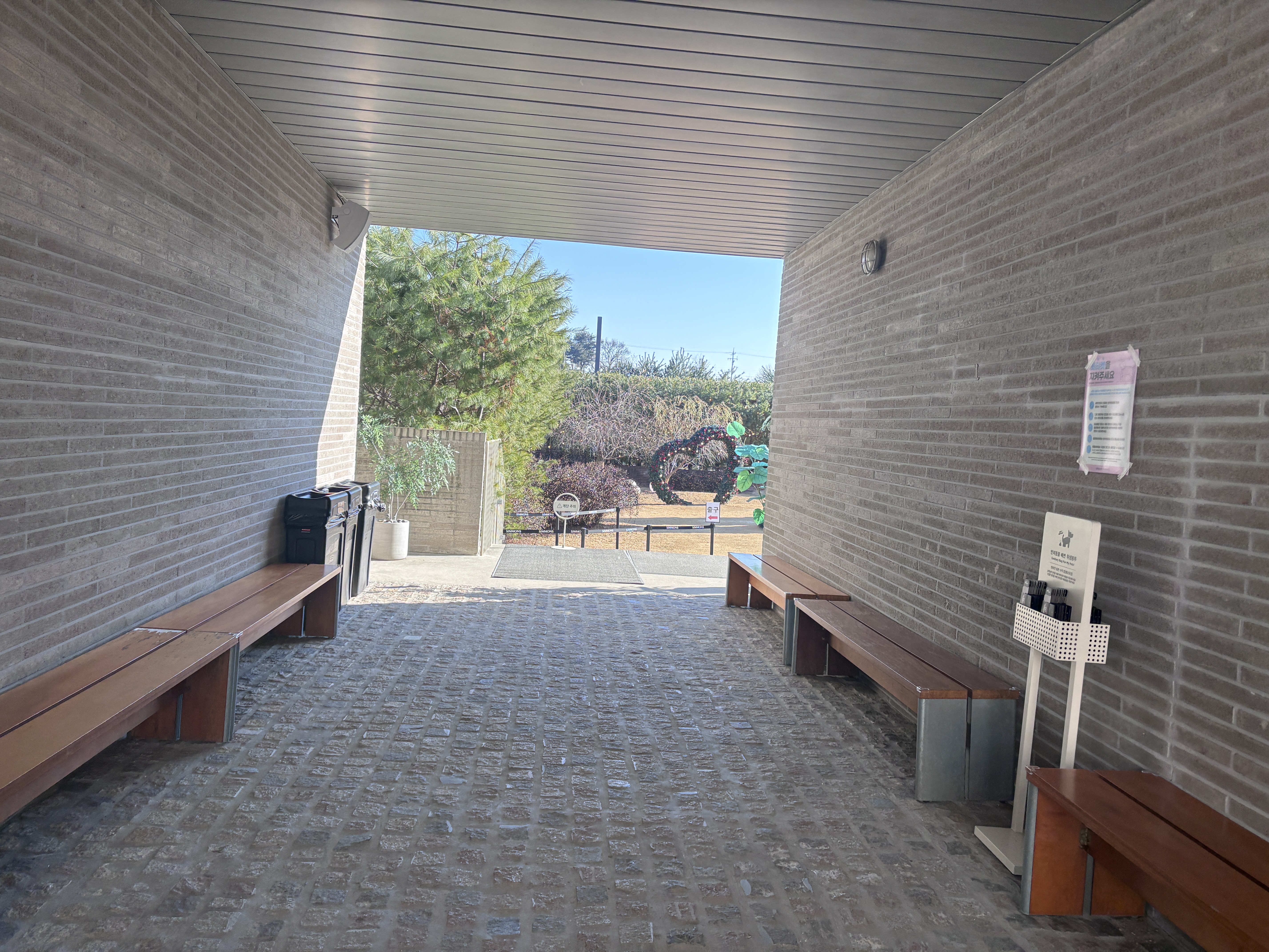우리의 첫번째 목적은 트리가 잔뜩 있는 시몬스의 포토존에서 사진을 찍는 것이라 트리를 찾아가기로 했습니다. 건물 사이를 통과하면 야외 공간이 나와요.