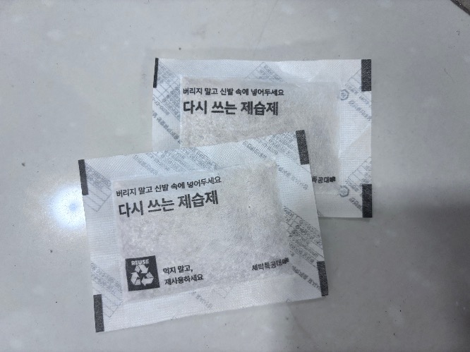 그런데 운동화를 맡기면 항상 운동화 안에 이렇게 제습제를 넣어줘요. 실리카겔 모아서 에센셜 오일같은거 떨어뜨려 놓으면 방향제로 쓸 수 있다는 말 듣고 해봤는데 제습제마다 안에 실리카겔이 들어있는게 있고, 물고기 밥 같은게 들어있는게 있고 다 다르더라고요? 그래서 몇 봉지 까다 버렸습니다. 하지만 가장 효율적으로 사용했을 때 두가지를 알려드릴게요!