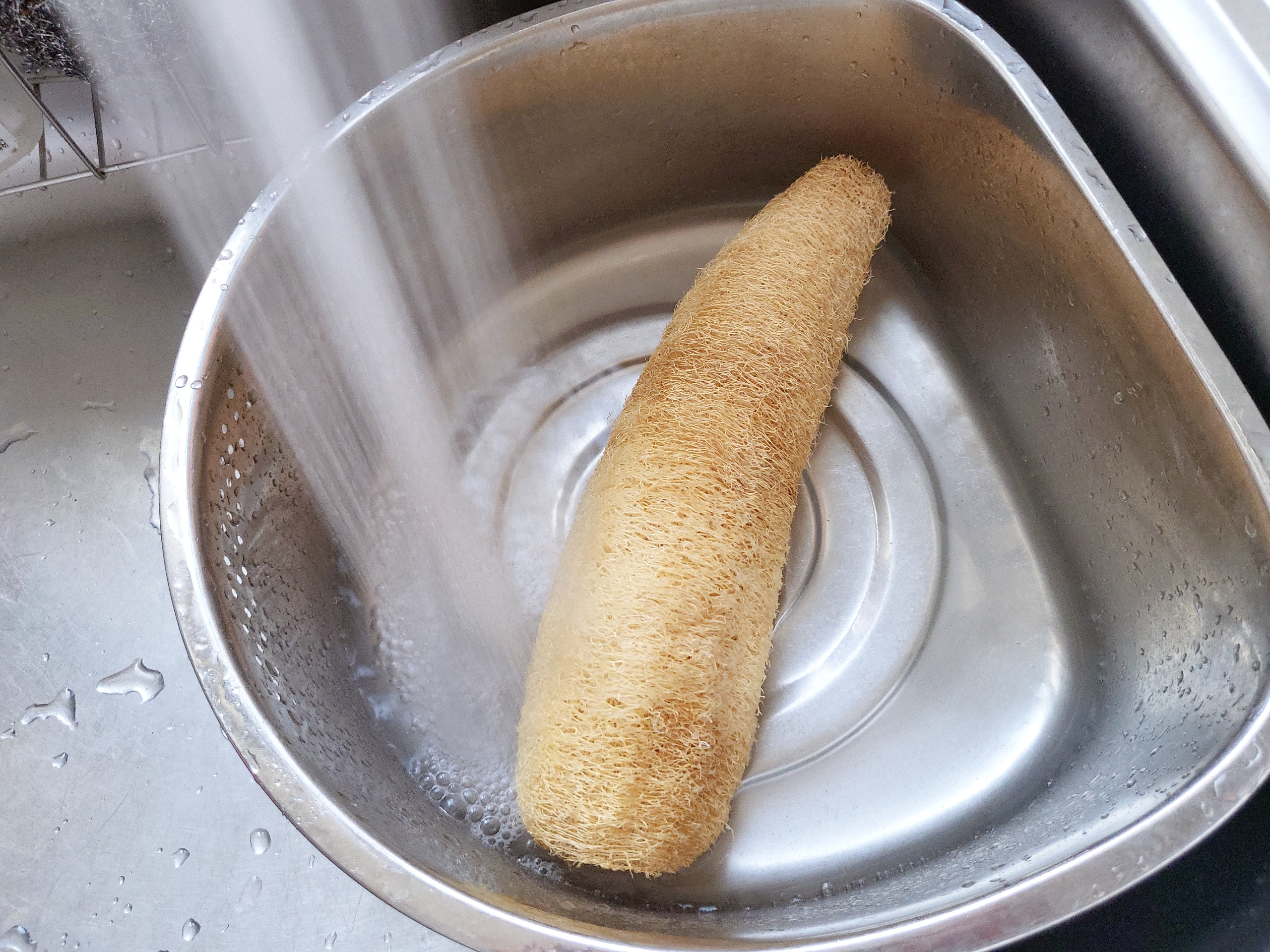 물론 천연수세미의 단점도 있어요. 제가 생각한 가장 큰 단점은 얼기설기 짜여있는 수세미의 섬유질 사이로 고춧가루나 밥풀 같은 음식물이 낀다는 점이입니다. 번거로워서 그렇지 흐르는 물에 쓱 헹궈 털어내면 해결되는 문제 이긴 해요. 또 다른 단점은 탄 냄비나 눌어붙은 음식을 닦기엔 역부족이라는 것입니다. 아무래도 섬유질로 이루어진 수세미이다 보니 박박 문질렀을 때 가해지는 힘이 합성수세미로 만든 것보다 약하긴 해요. 그래서 저는 철수세미를 사용하며 보완해주고 있어요.
