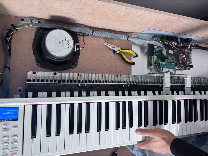 기사님 오셔서 피아노 열었을 때 모습입니다. 이때 아니면 먼지를 닦을 수 없을 것 같아 먼지떨이개로 열심히 먼지를 닦았어요. 기대했던 것 보다 내부가 간단해서 조금 실망(?)했습니다. 정말 다행스럽게도 전원버튼만 교체하면 되는거였어요ㅠㅠ 앞으로 잔고장 없이 잘 써야 할텐데... 다 수리해주시고 이것저것 살펴봐 주시더라고요. 피아노 무지랭이라 수리기사님이 참 감사했습니다ㅜㅜ