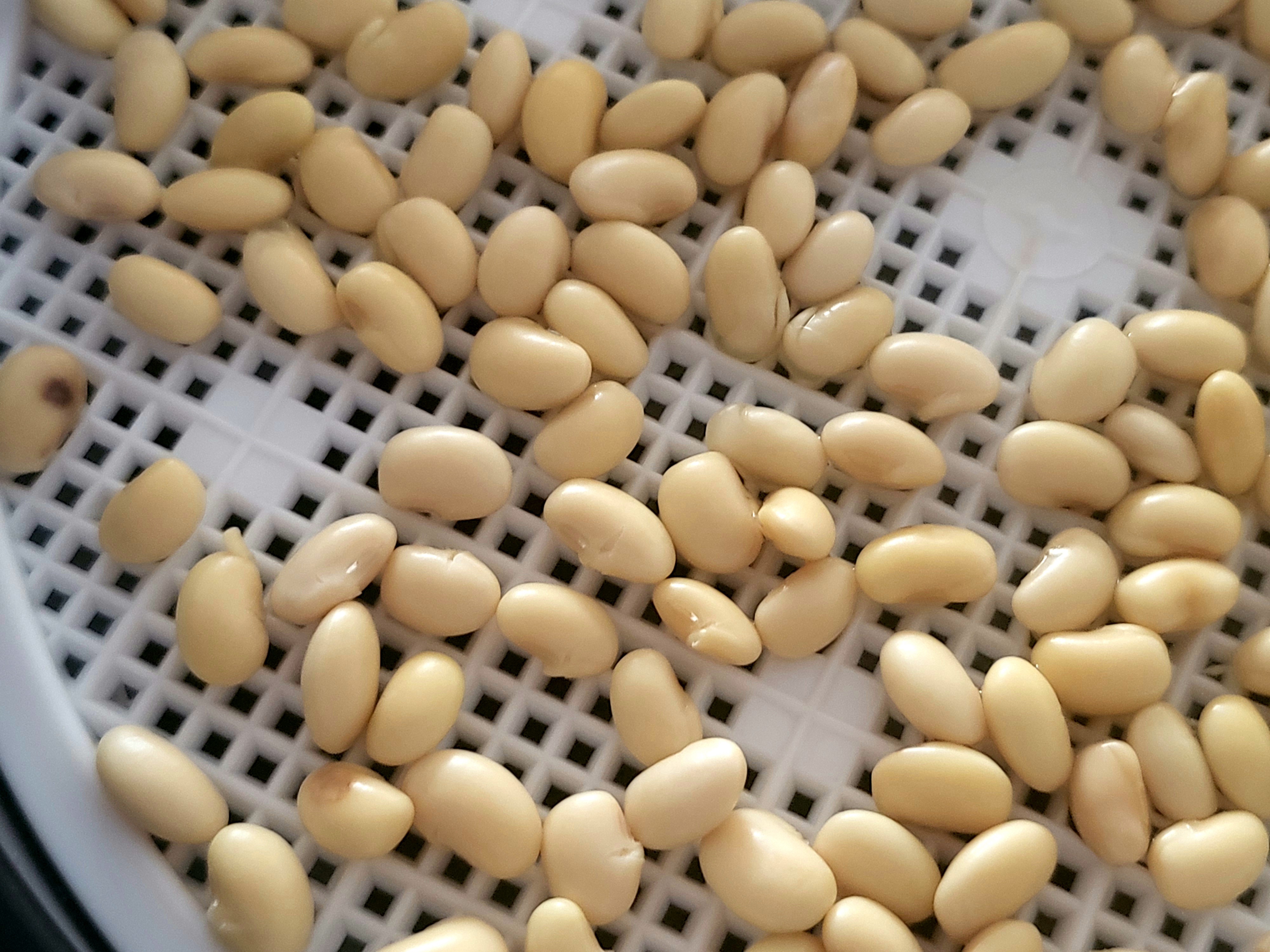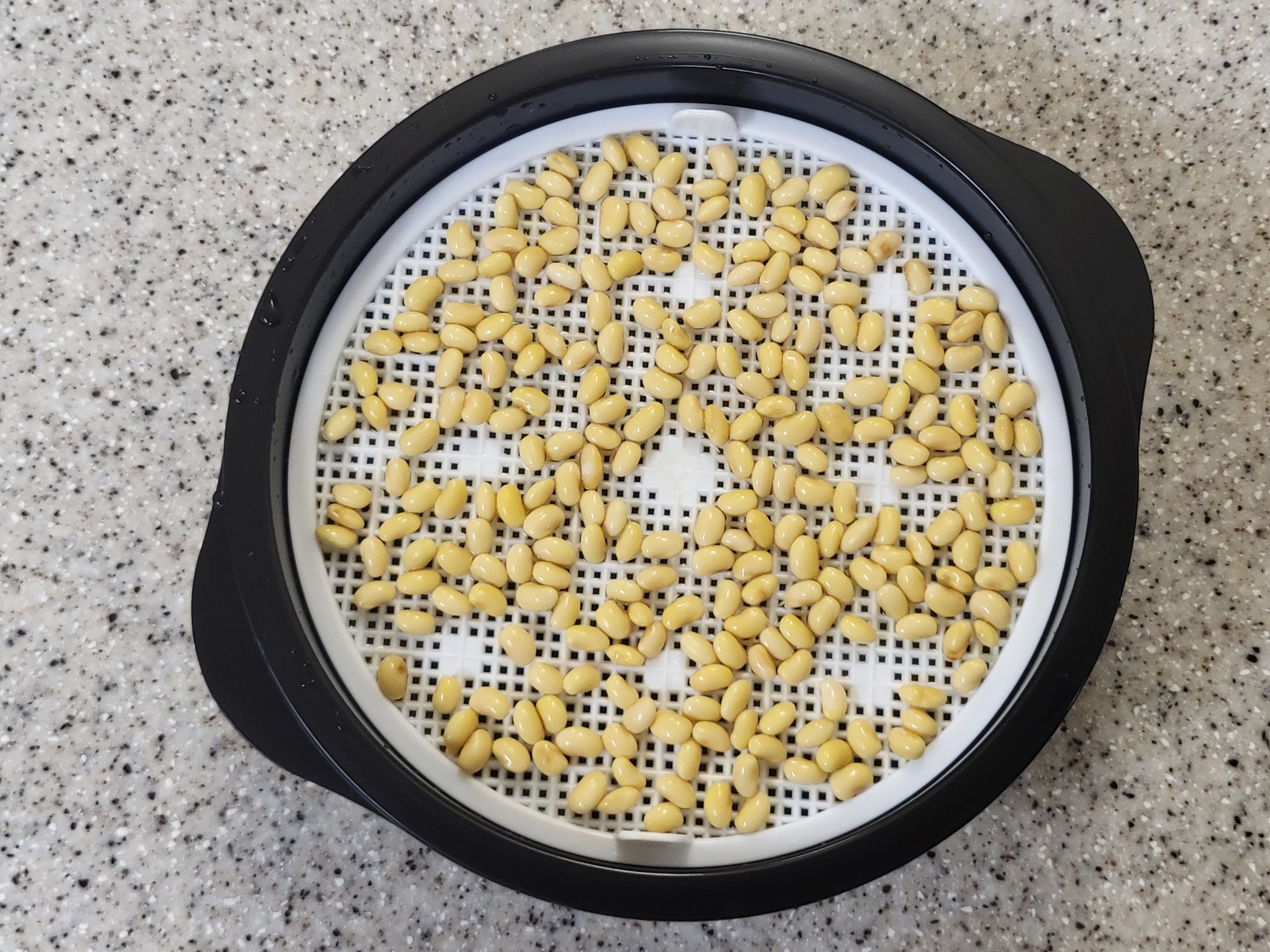 불린 콩을 콩끼리 서로 겹쳐지지 않게 잘 벌려서 채반 위에 놓아달라고 설명서에 쓰여있어서 그렇게 해봤어요. 예전엔 콩을 무더기로 그냥 뒀었는데 그게 실패의 원인이었던 걸까요....?