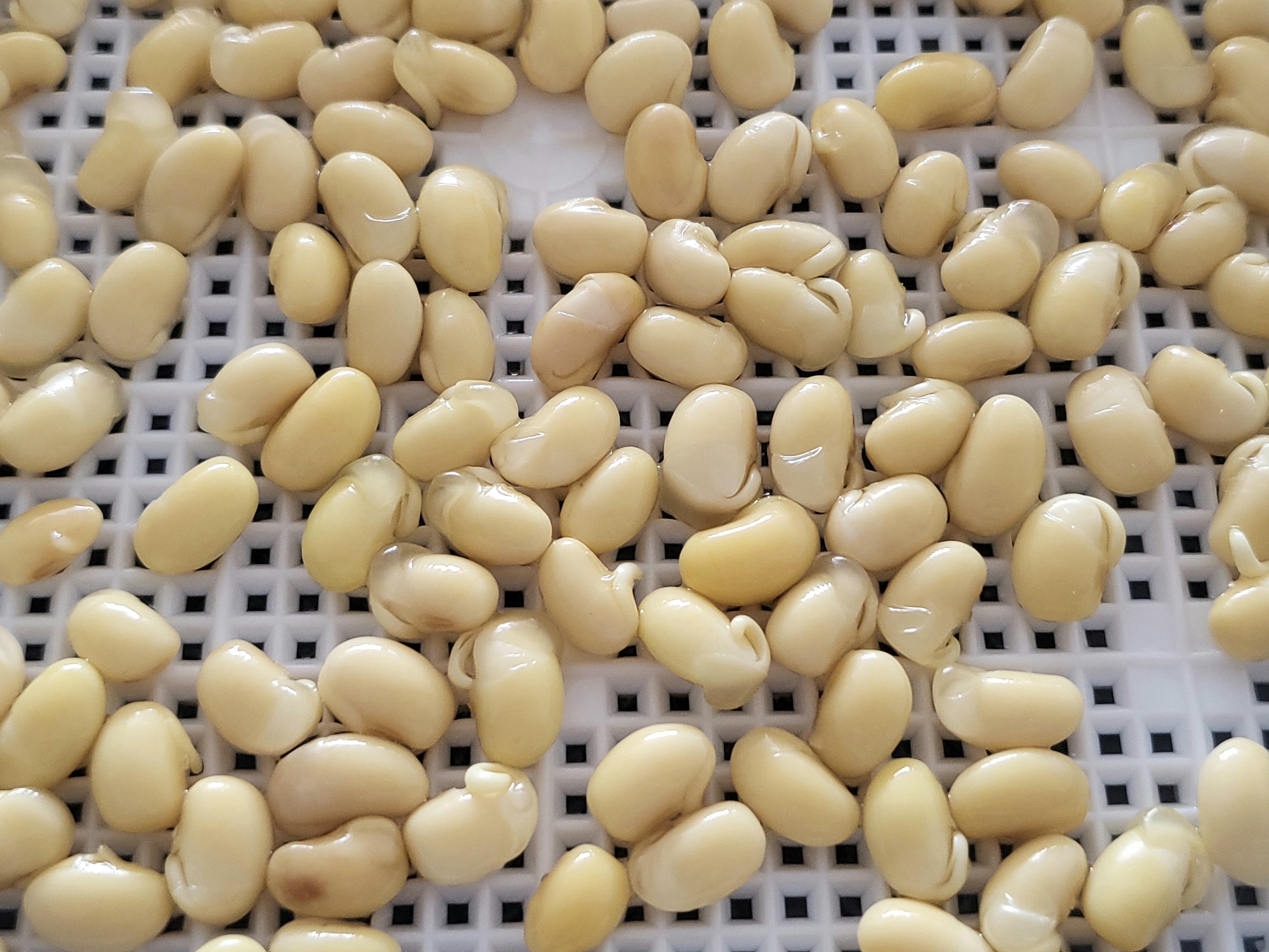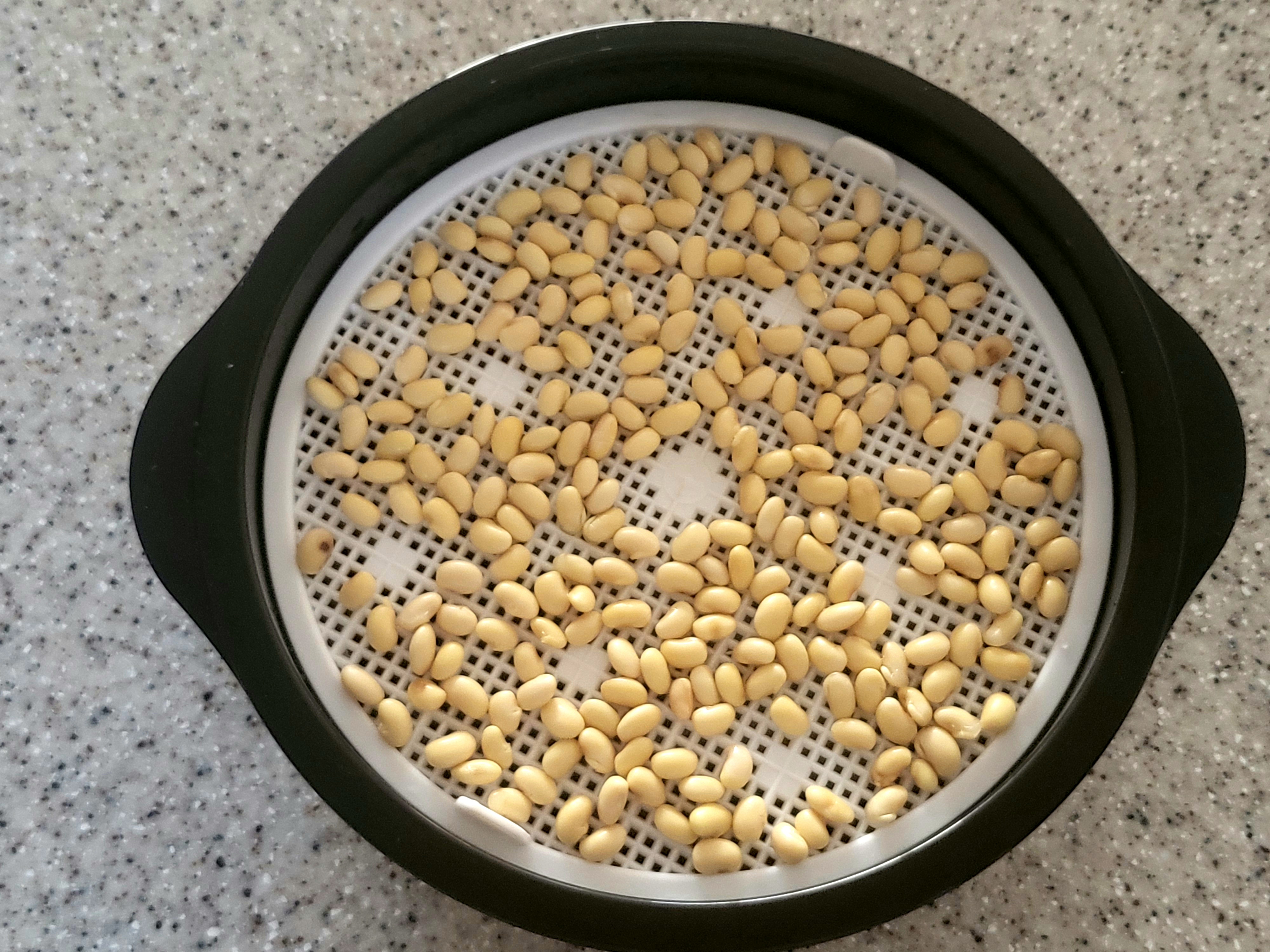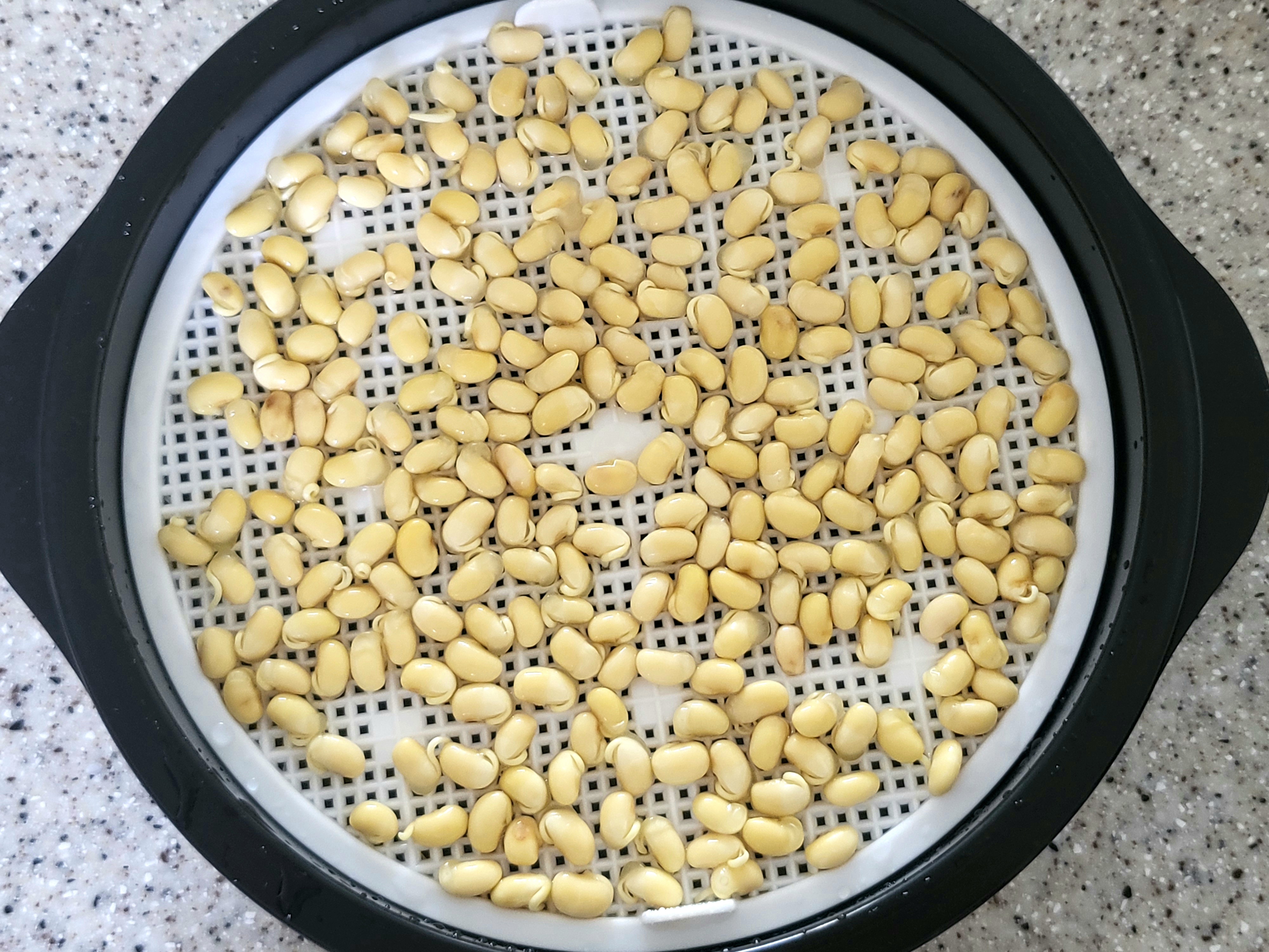 불린 콩을 콩끼리 서로 겹쳐지지 않게 잘 벌려서 채반 위에 놓아달라고 설명서에 쓰여있어서 그렇게 해봤어요. 예전엔 콩을 무더기로 그냥 뒀었는데 그게 실패의 원인이었던 걸까요....?
