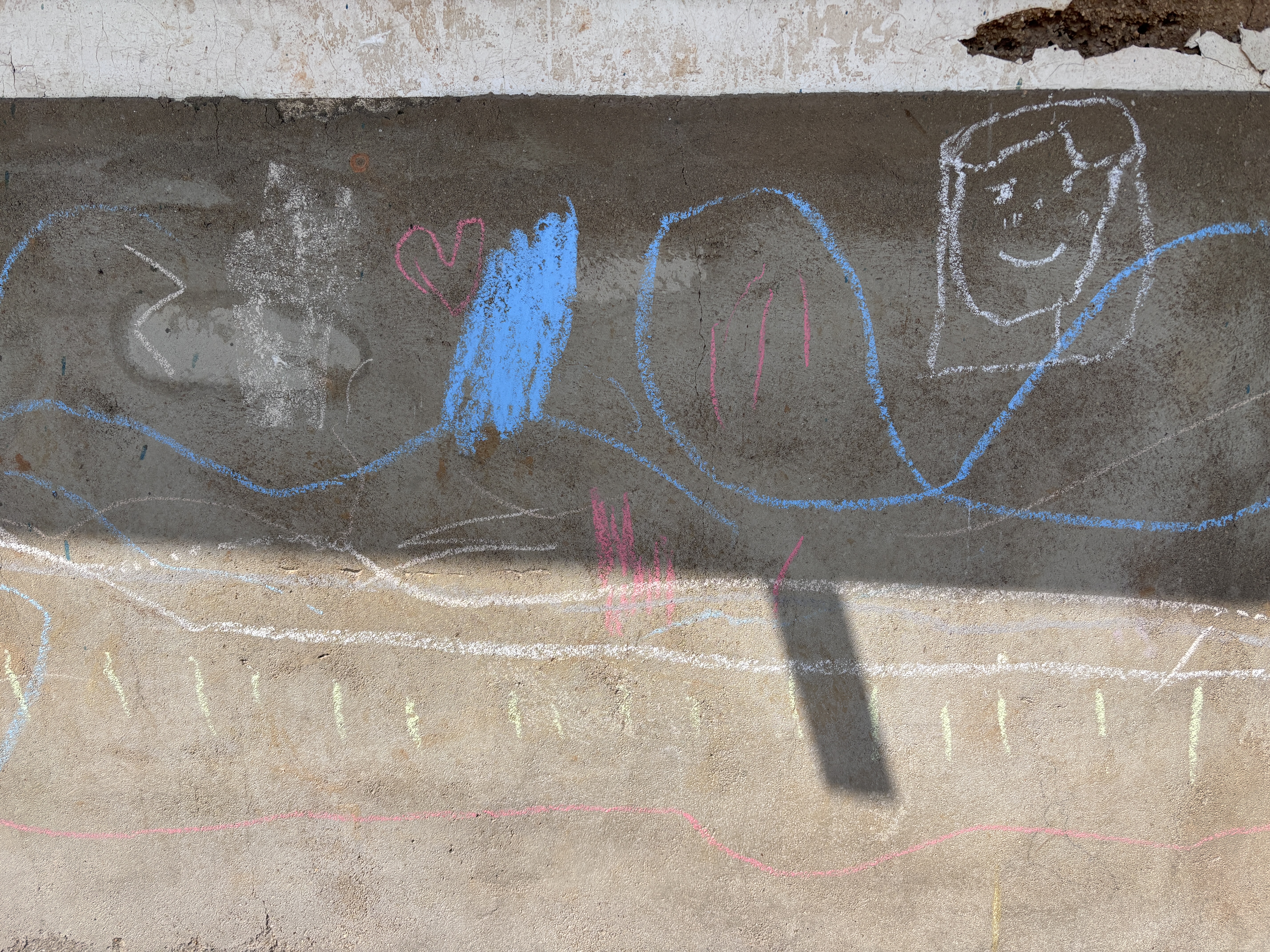 시골집 벽에다가 잔뜩 낙서를 해보았어요. 평소엔 종이에다가 그림을 그려왔는데 할머니댁 벽에다 낙서한다는 쾌감에 신이 났습니다. 벽에다가도 잔뜩 그리고 바닥에도 그리고. 보는 제가 다 스트레스가 풀리더라고요.