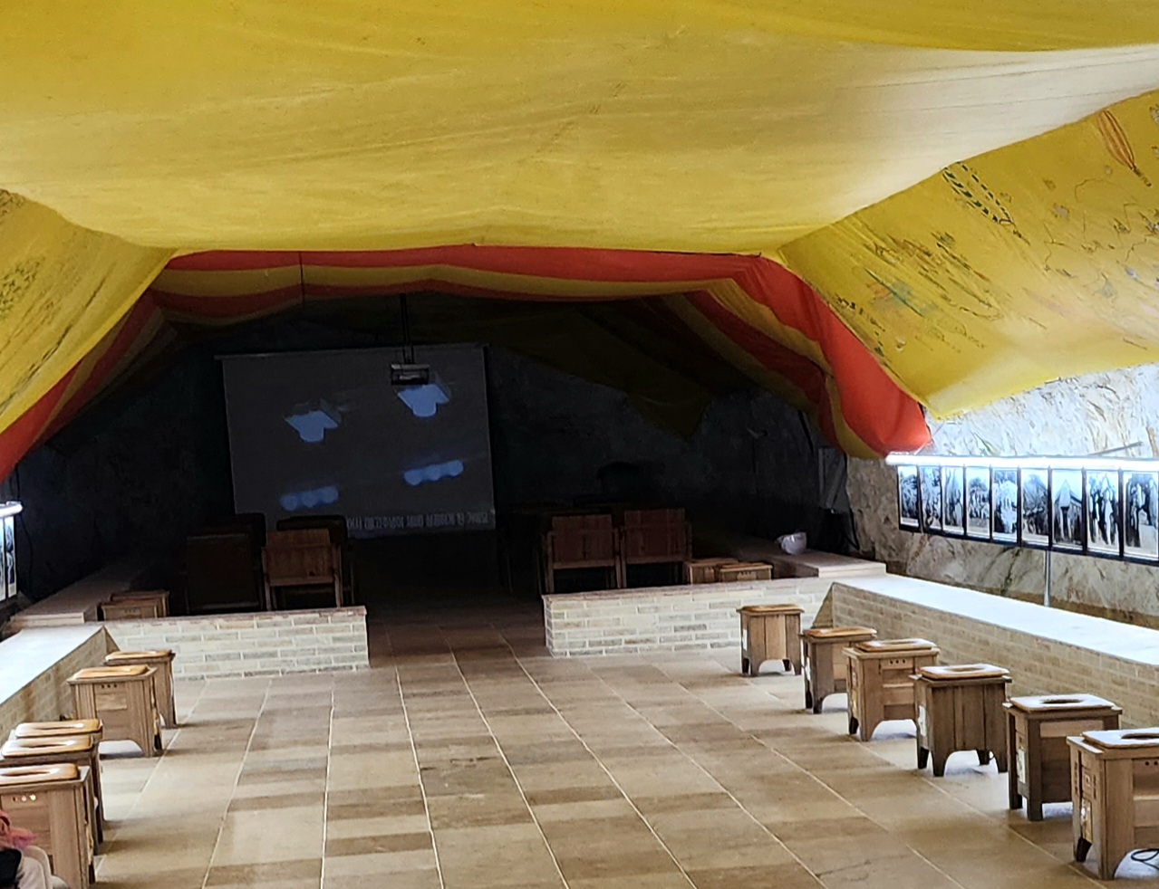 광물을 위아래로 운반하는 기계라는 권양기도 몇 대 보았는데 아이들이 아직 어려서 그런지 권양기 보단 반짝거리는 불빛으로 꾸며놓은 것에 훨씬 더 즐거워 했습니다. 그리고 초입에 건강테라피실이라고 좌욕기를 잔뜩 갖다놓은 공간이 있어요. 거기 앉으면 엉덩이가 뜨끈뜨끈한게 좋은지 애들이 일어날 생각을 하지 않더라고요..ㅋㅋㅋ