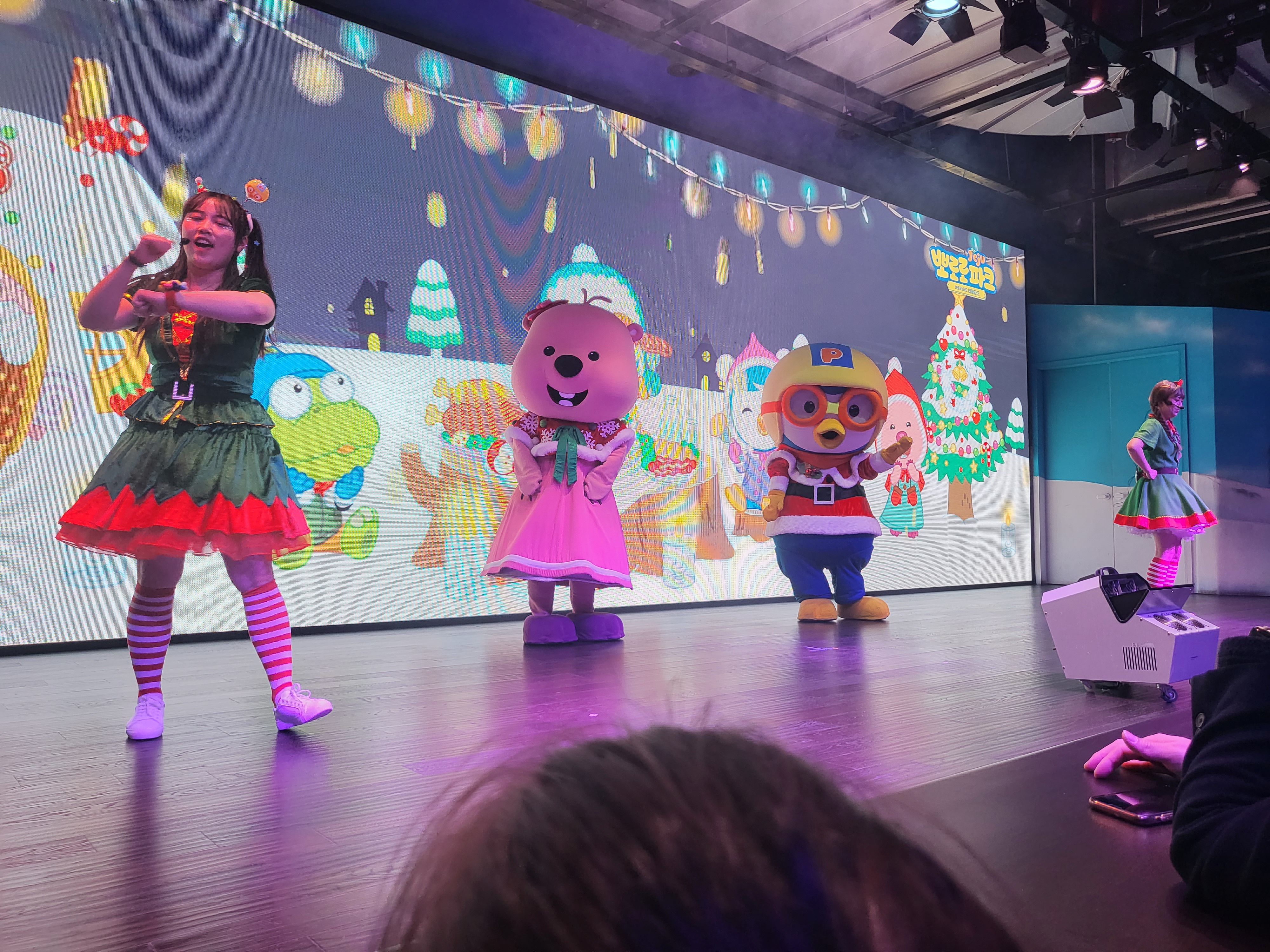 공연은 캐릭터 탈을 쓴 뽀로로와 친구들이 약간의 스토리와 함께 춤을 추는것, 마술 공연 이렇게 2회에 걸쳐서 진행됐었고,