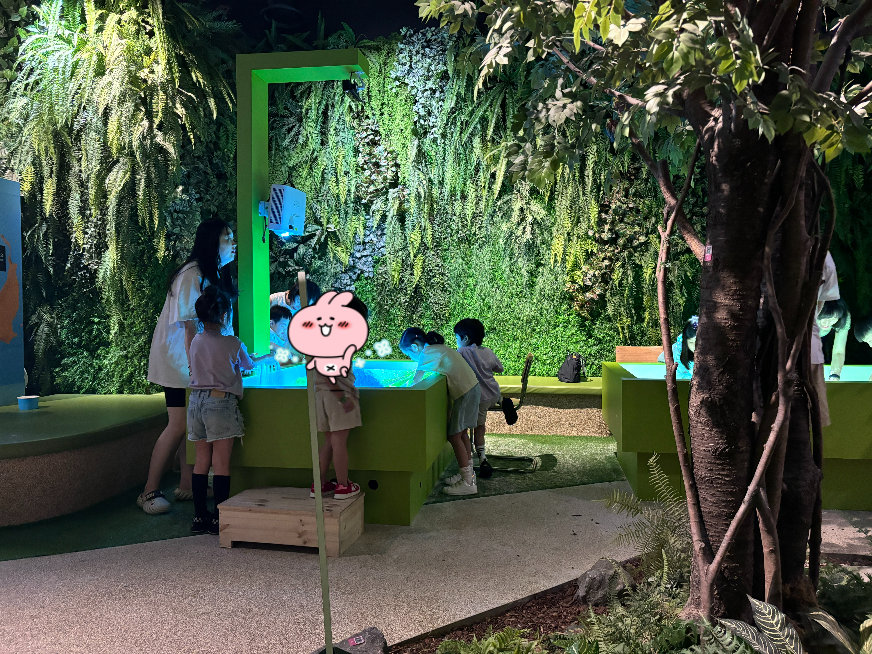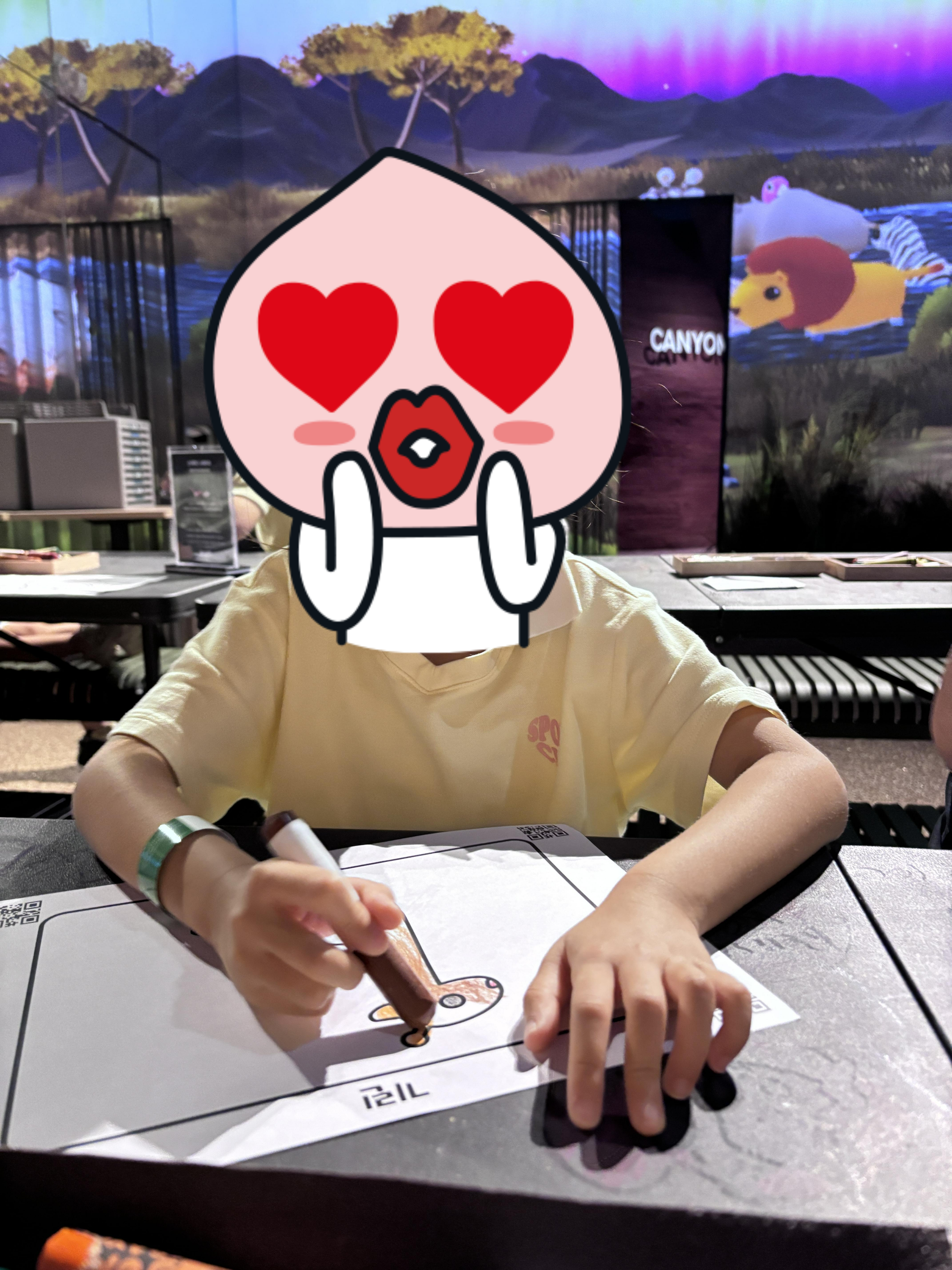 입장하면 원하는 동물 색칠해서 스캔하면 벽에 띄워주는 활동으로 시작해요. 저희집 아이들은 이거 정말 좋아하더라고요. 다른 박물관 가서도 꼭 하고 지나가는 코스. 이날은 아빠가 적절히 다음 스테이지로 넘어가보자며 꼬셔서 금방 이동했어요.